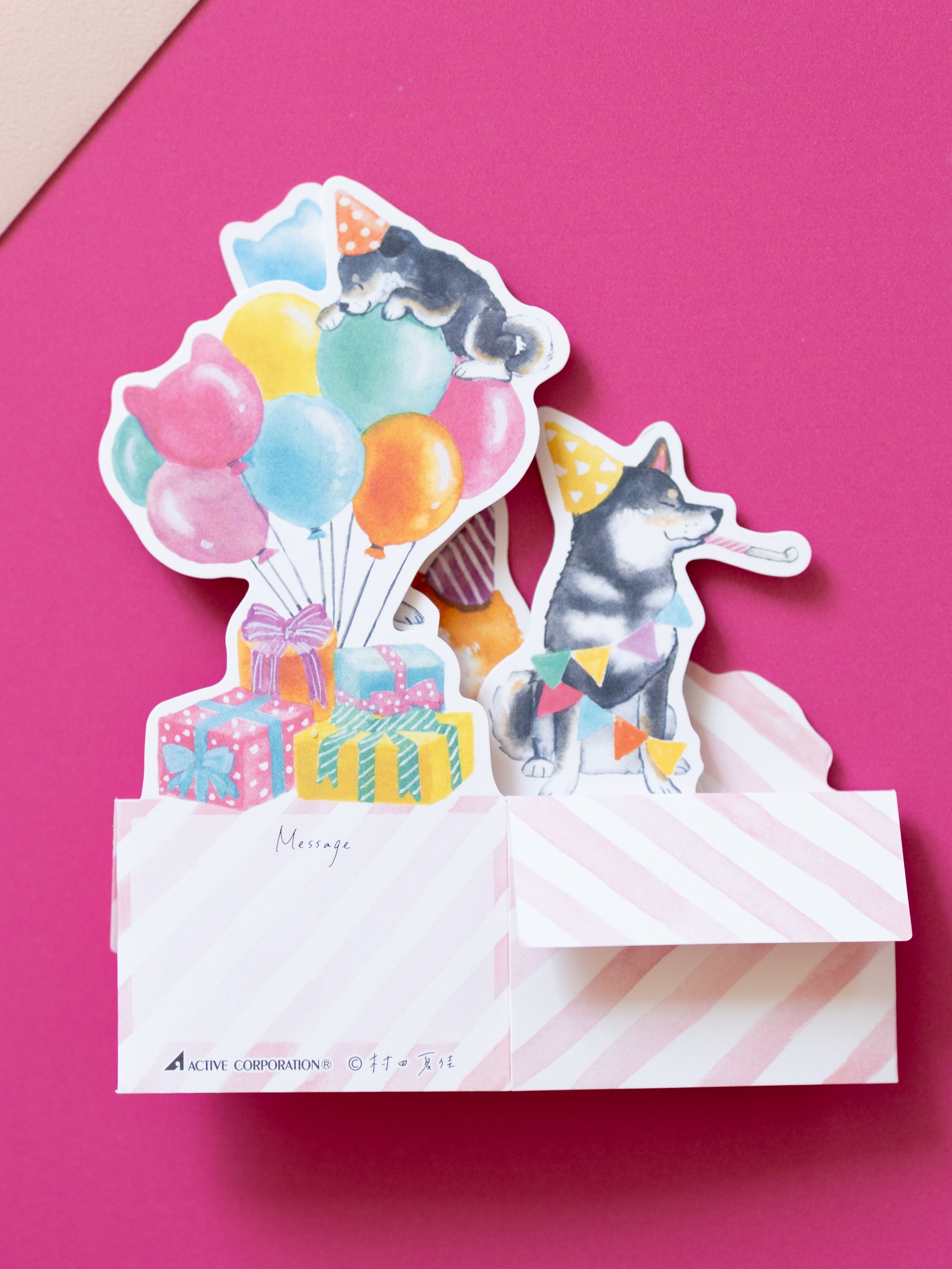 Carte anniversaire 3D Chiens Shiba Gâteau d’anniversaire