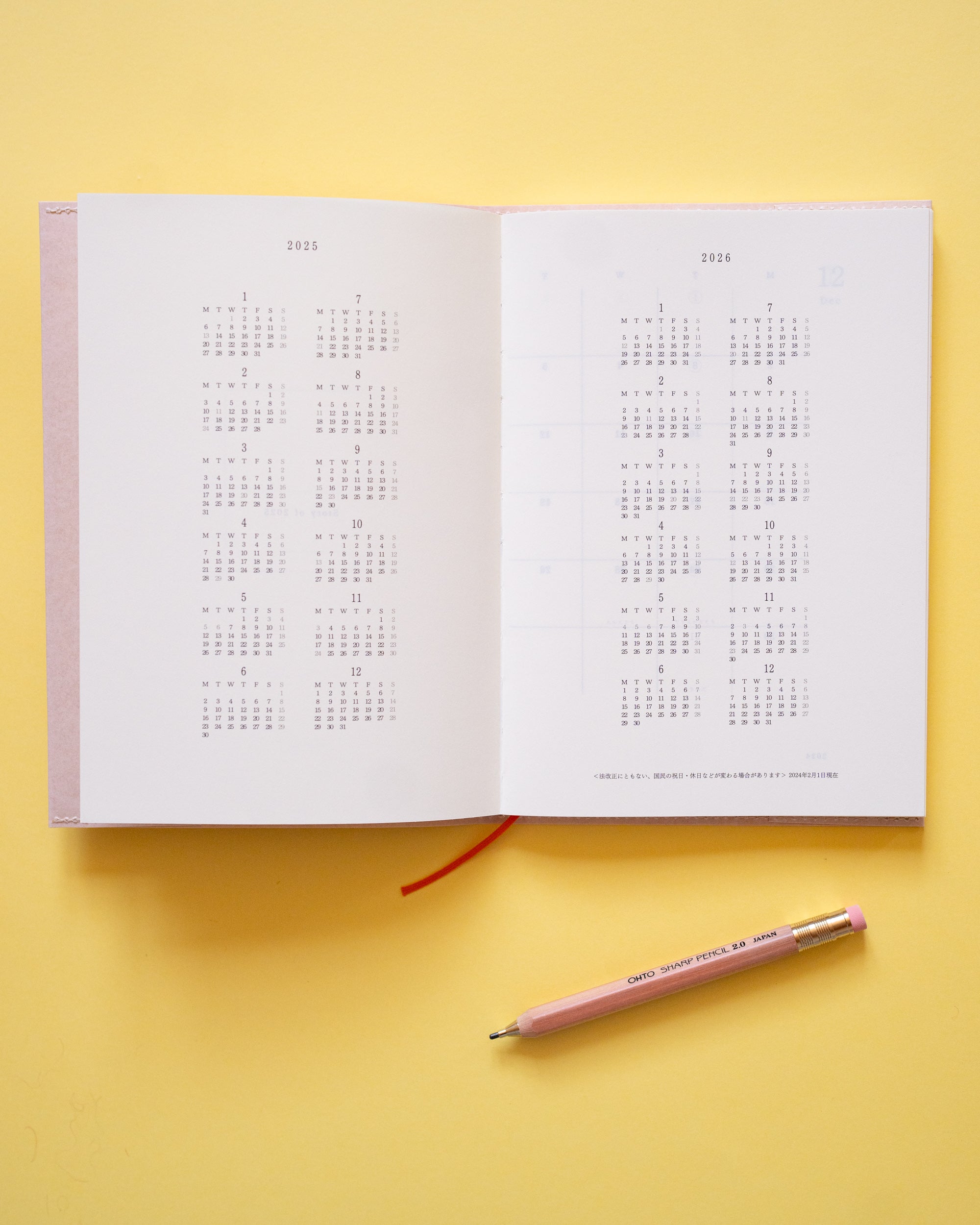 Le MD Notebook Diary 2025 est un agenda pensé pour un usage quotidien, avec une mise en page pratique et fonctionnelle. Il comprend un calendrier annuel sur 2 pages, un planning mensuel de décembre 2024 à janvier 2026 réparti sur 28 pages, ainsi que 113 pages de notes divisées en huit sections avec des lignes de 7 mm de large, et 32 pages de notes vierges, pour un total de 175 pages.