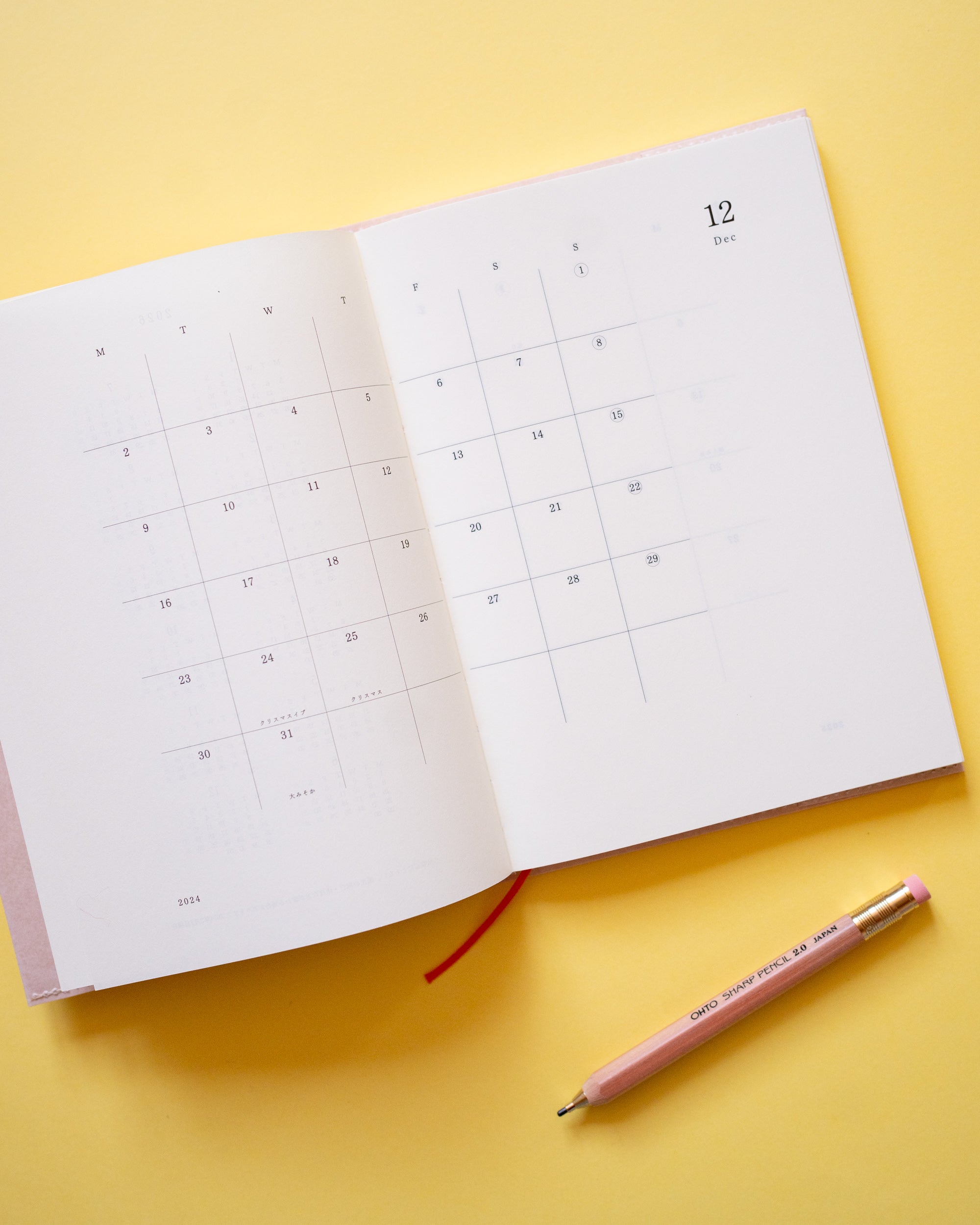 Les pages mensuelles offrent de larges marges, idéales pour ajouter des notes ou des dessins. Les pages hebdomadaires structurées laissent une grande liberté pour organiser ses idées et esquisser des croquis. Ce carnet allie planification et créativité, permettant d’écrire et de dessiner sur une double page comme sur une toile, avec des marges généreuses pour laisser place à l’inspiration et aux idées.