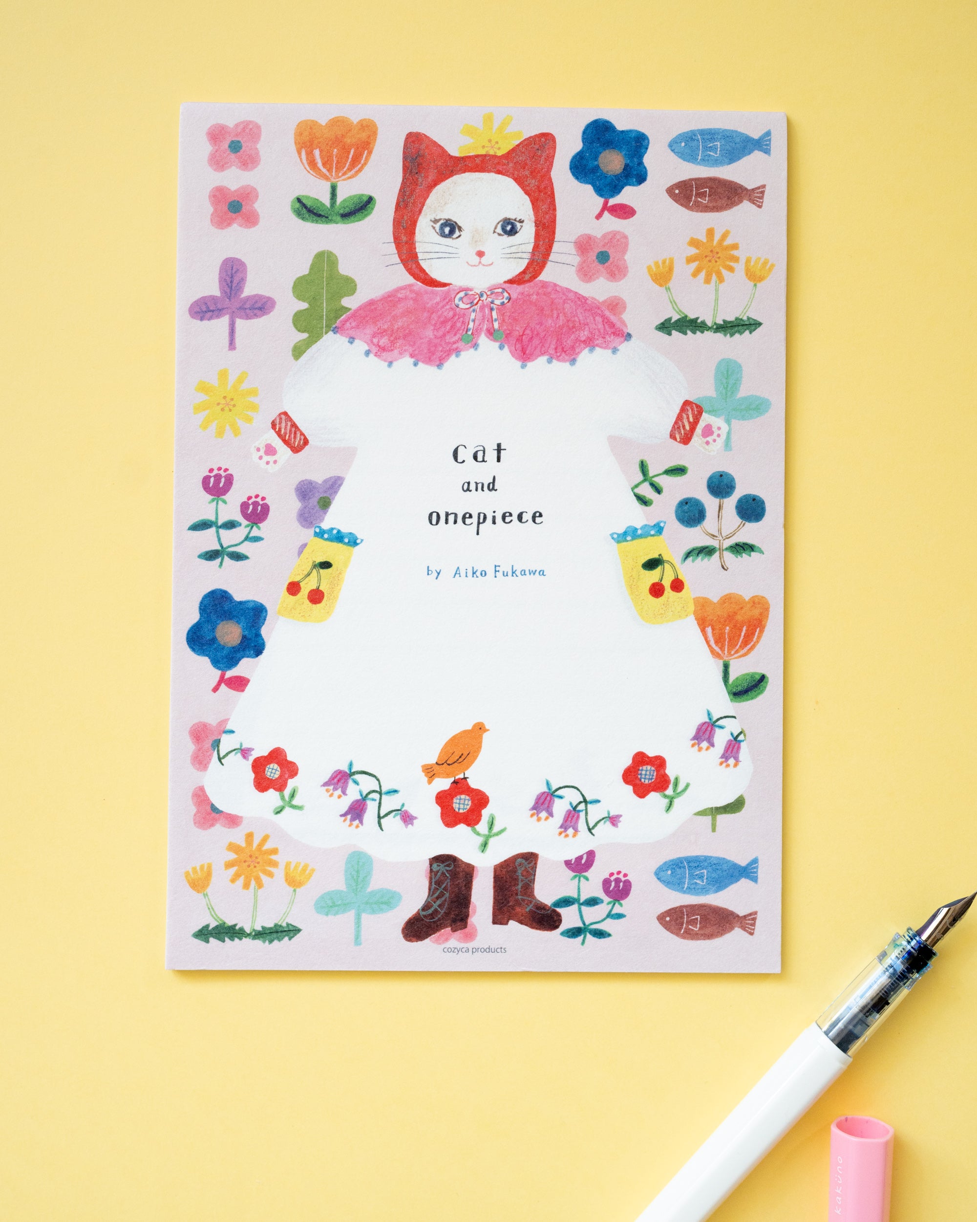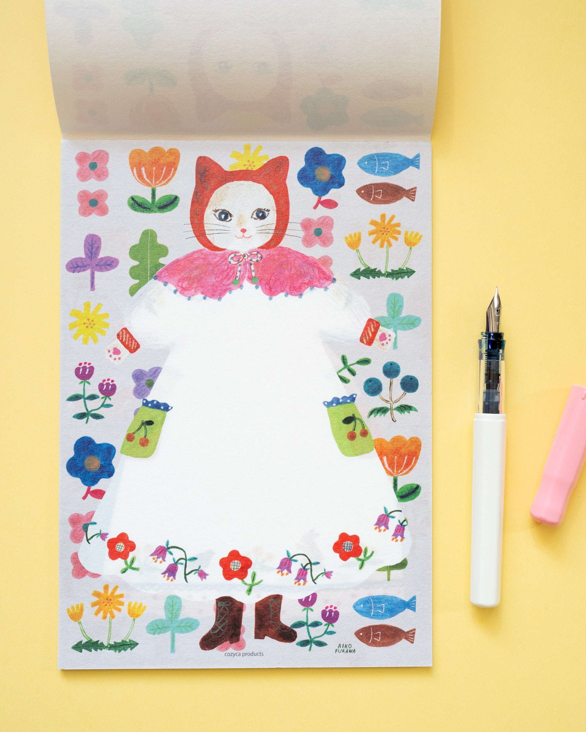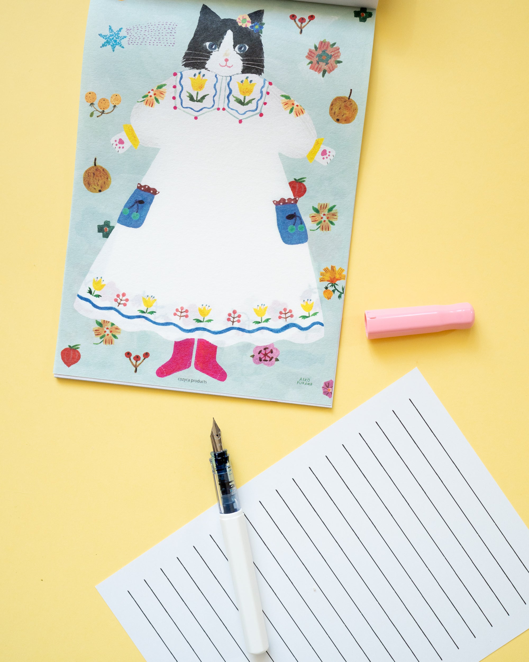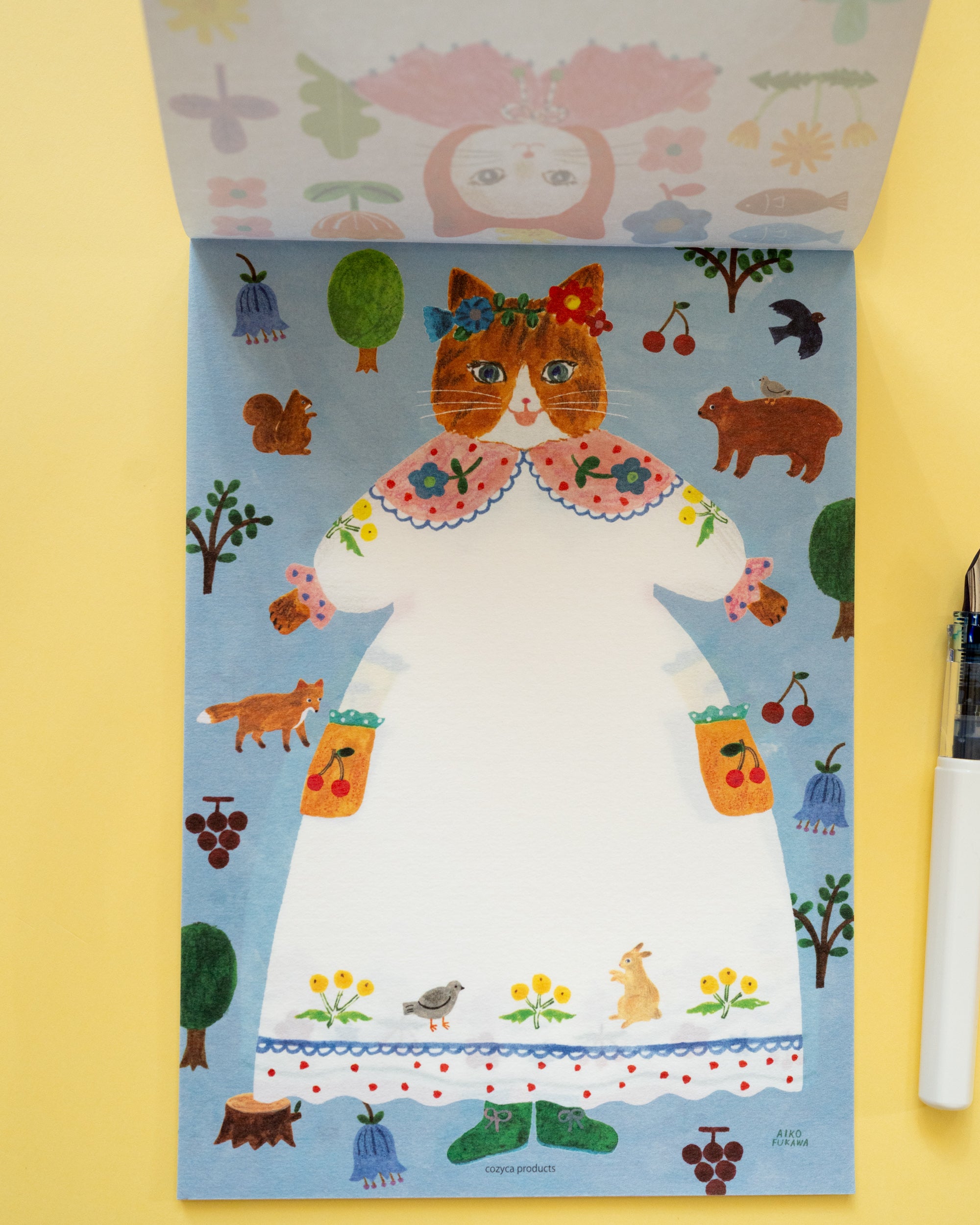 Ajoutez une touche de poésie à vos courriers avec ce magnifique bloc de papier à lettres illustré par l’artiste japonaise Aiko Fukawa, en collaboration avec Cozyca Products. Chaque feuille est une petite œuvre d’art, mettant en scène des illustrations tendres et colorées au charme délicat.