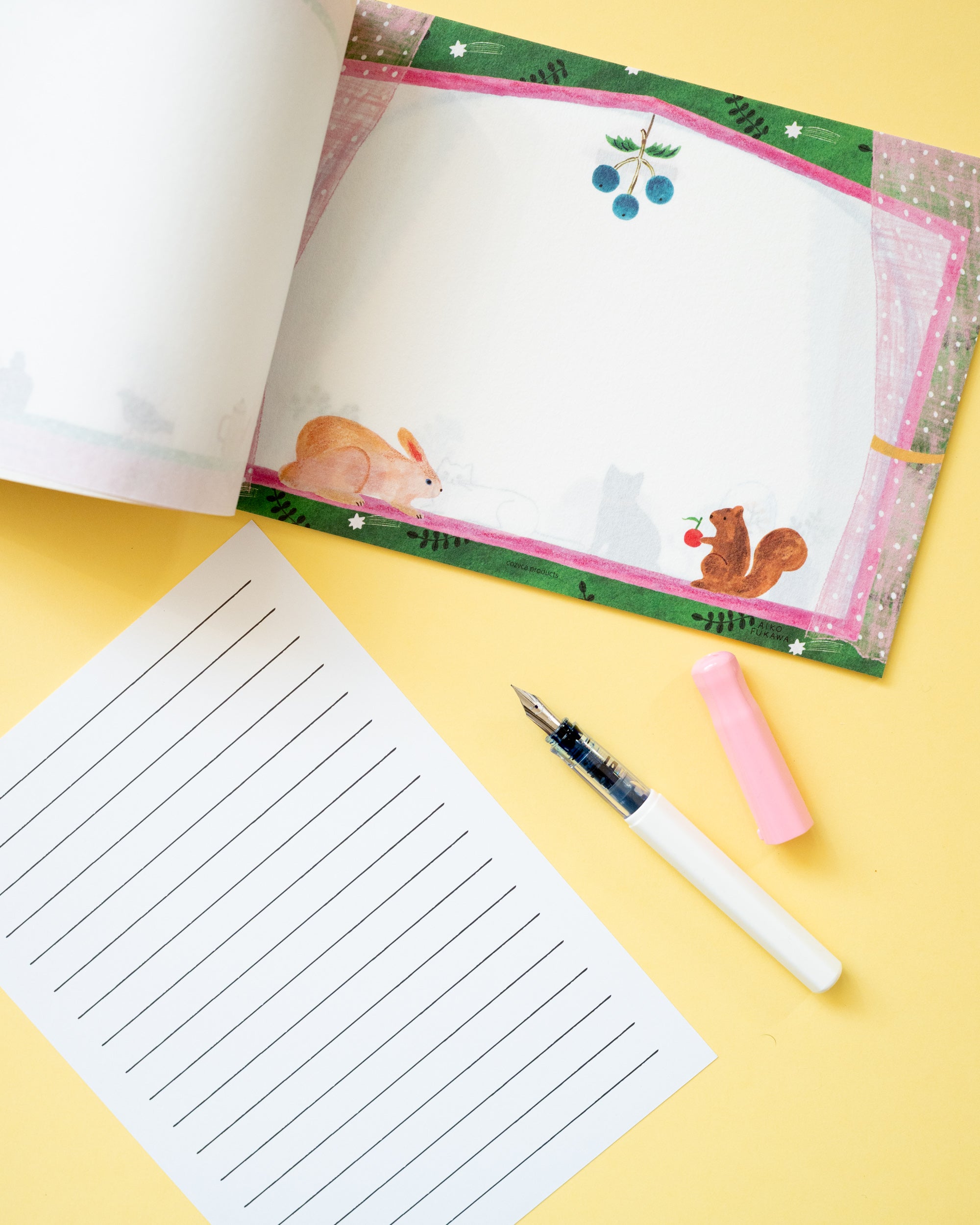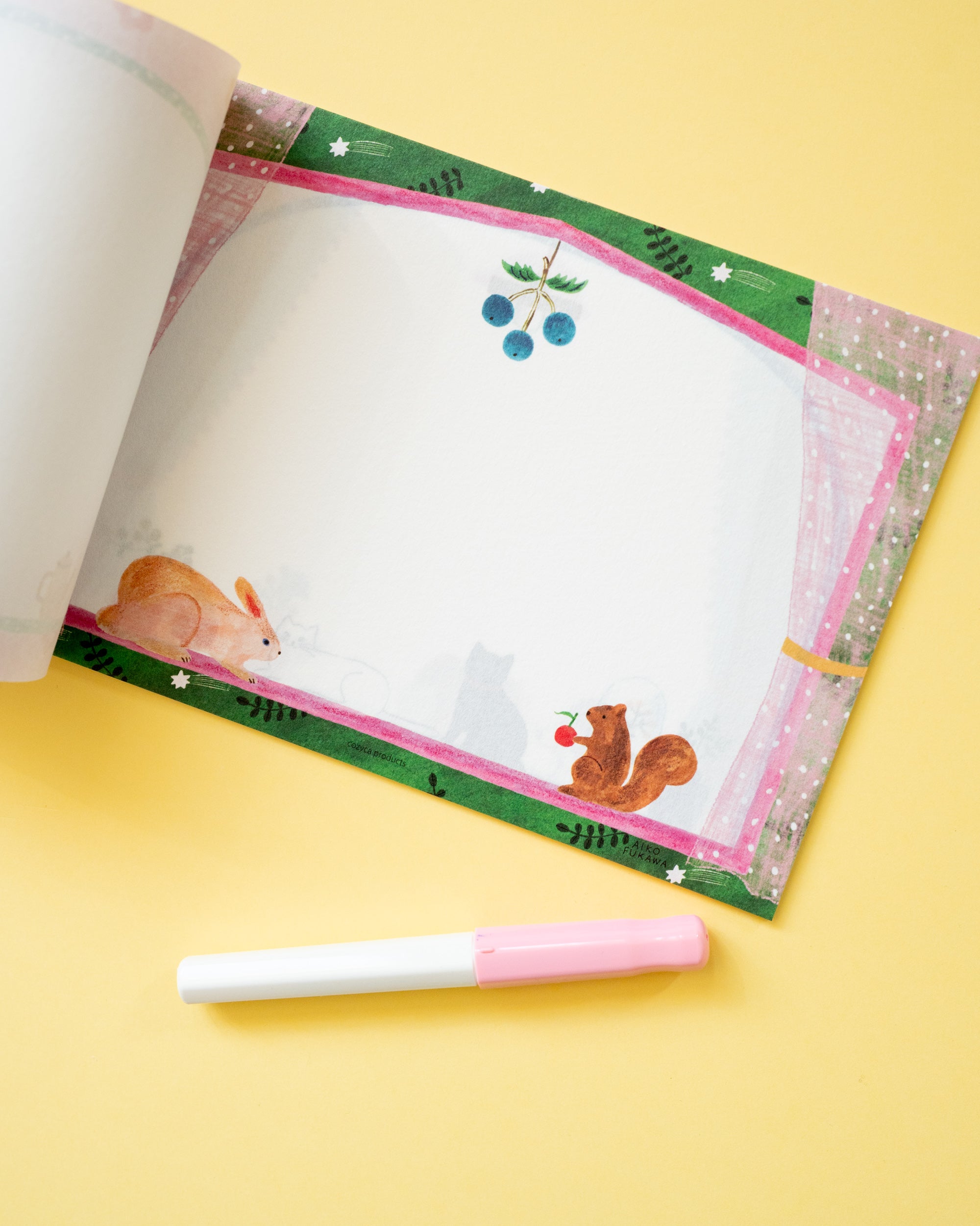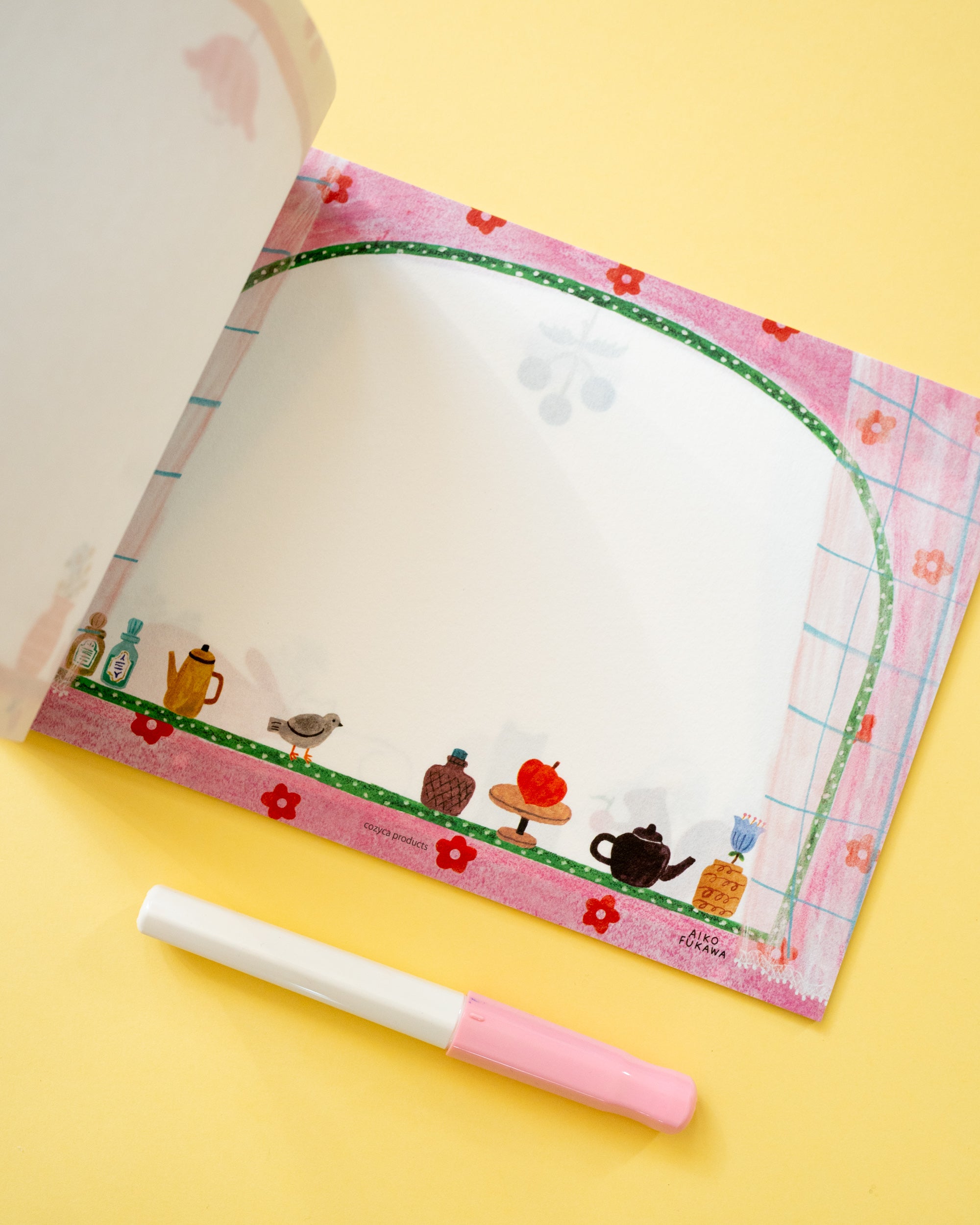 Ajoutez une touche de poésie à vos courriers avec ce magnifique bloc de papier à lettres illustré par l’artiste japonaise Aiko Fukawa, en collaboration avec Cozyca Products. Chaque feuille est une petite œuvre d’art, mettant en scène des illustrations tendres et colorées au charme délicat.