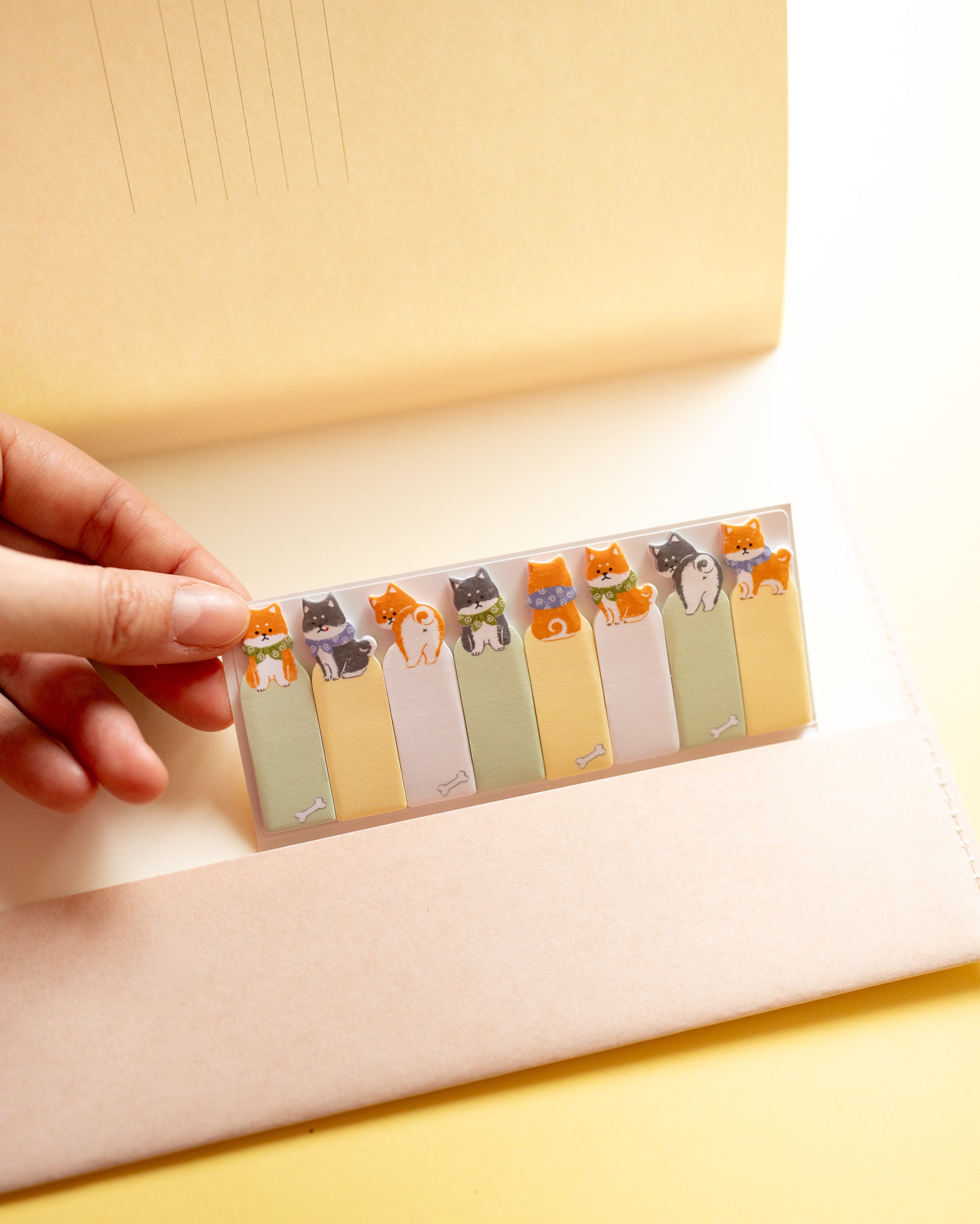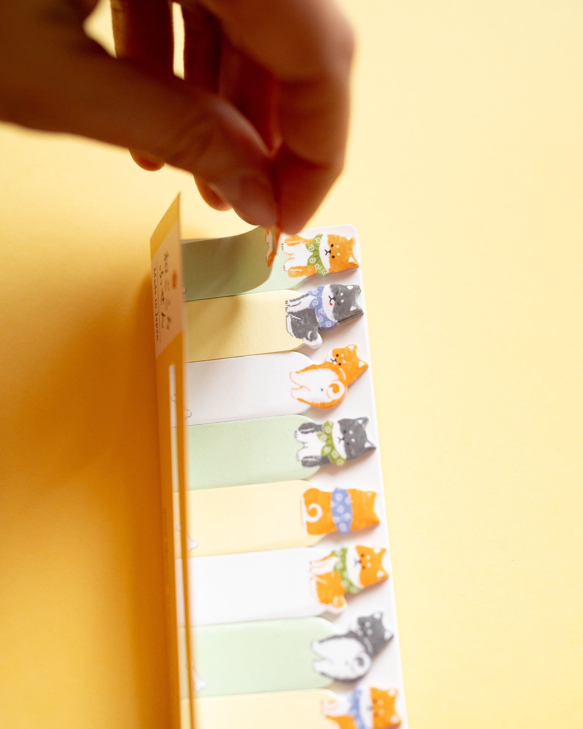 Marquez vos pages avec ces adorables blocs-notes autocollants ! Chaque note présente un Shiba mignon qui dépasse des bords de votre livre ou carnet fermé. Les notes sont en papier, vous permettant également d’écrire un petit mémo pour lorsque vous reviendrez à la page marquée. Chaque set est présenté dans un petit livret en papier qui peut être glissé dans la couverture d’un carnet pour un accès facile lors de vos déplacements.