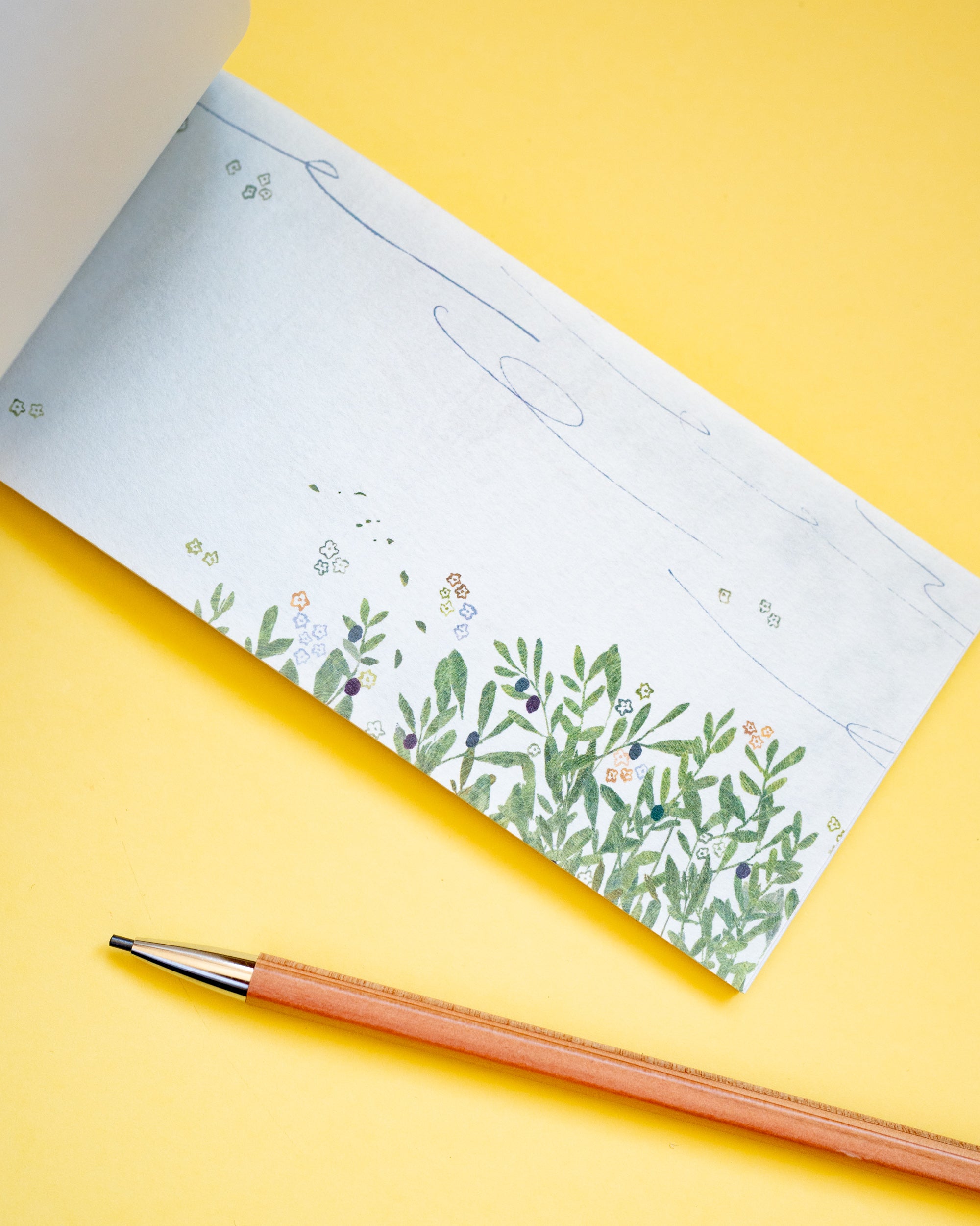 Magnifique bloc-notes illustré par l’artiste japonaise Omori Momoko en collaboration avec cozyca products.Fabriqué en papier Mino japonais, il offre une texture agréable au toucher que vous allez adorer.