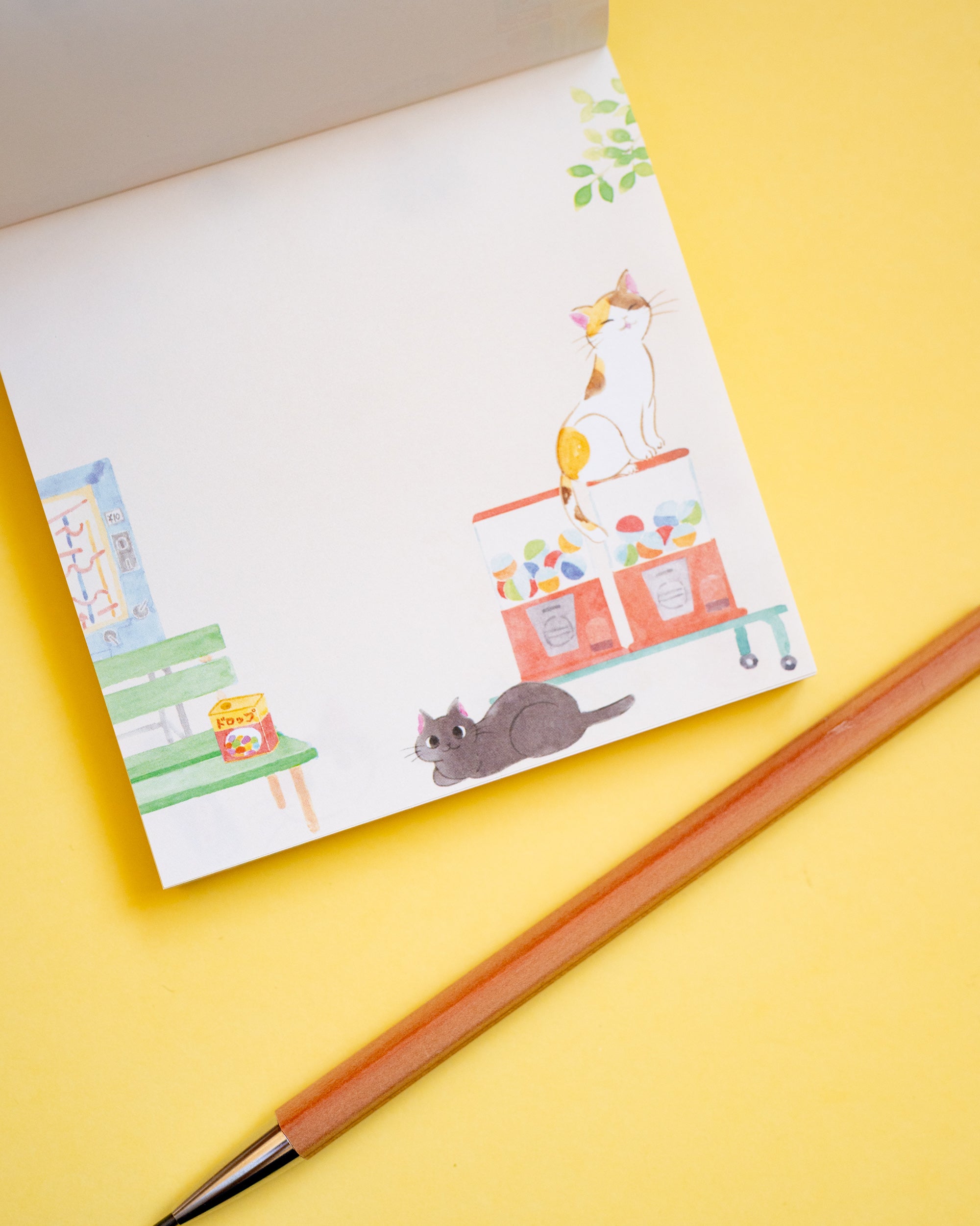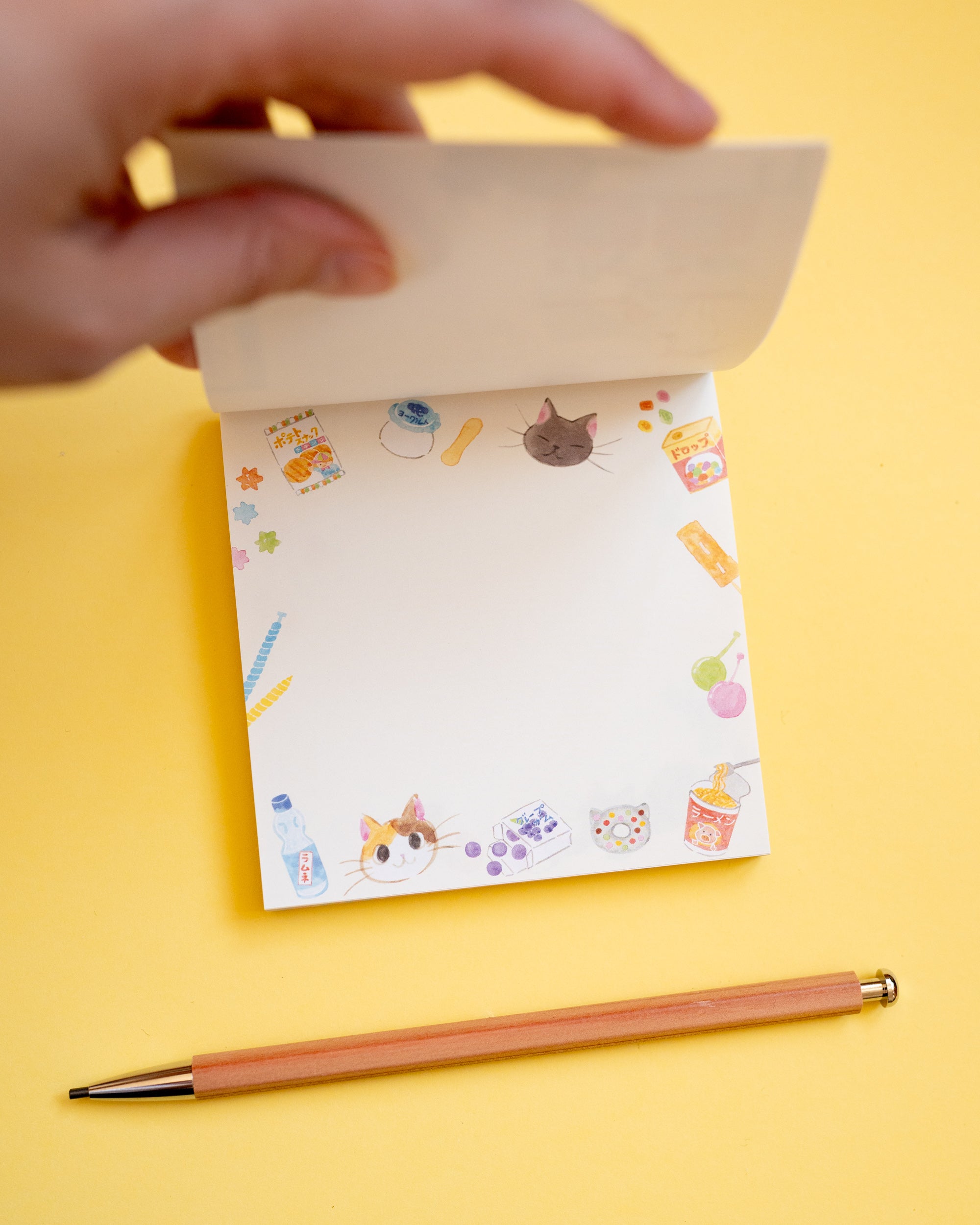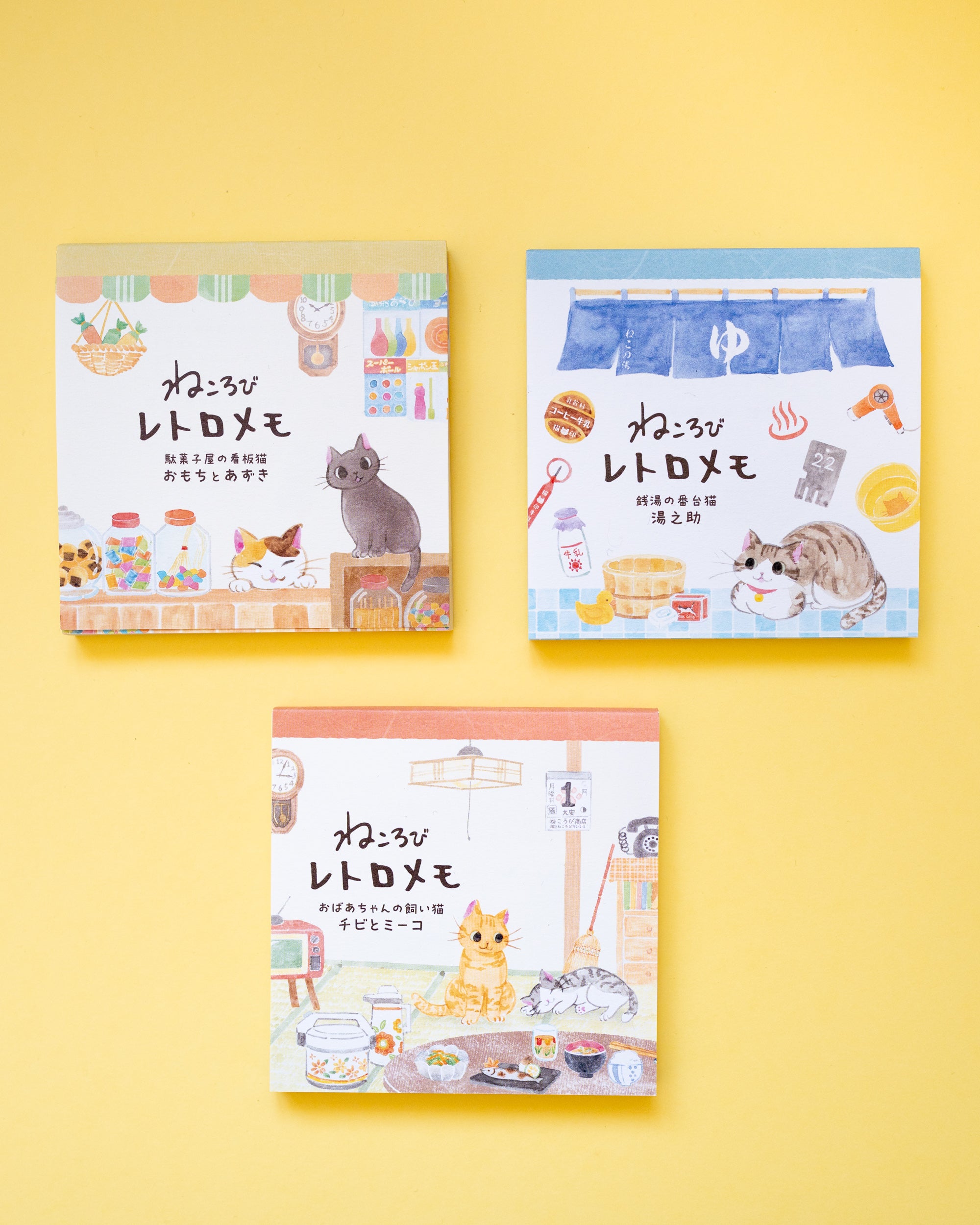 Ce joli bloc-notes met en scène Mochi et Azuki, deux chats adorables, mascottes d’une confiserie japonaise au charme rétro, entourés de bonbons et de jouets anciens. Inspirés par les clients de la boutique, Mochi est une chatte tricolore libre et espiègle, tandis qu’Azuki est un chat calme et attentionné, toujours prêt à surveiller les lieux quand le propriétaire s’absente. Ensemble, ils adorent jouer avec les enfants et des ballons en papier colorés ! Le bloc contient 4 designs assortis (20 feuilles chacun, soit 80 feuilles au total) aux illustrations douces et pleines de nostalgie. Fabriqué au Japon, ce mémo est parfait pour laisser de jolis petits mots, accompagner un cadeau, décorer votre journal créatif et de scrapbook ou encore noter vos pensées du jour. Une papeterie pleine de charme qui ravira les amoureux des chats et de l’esthétique rétro japonaise.