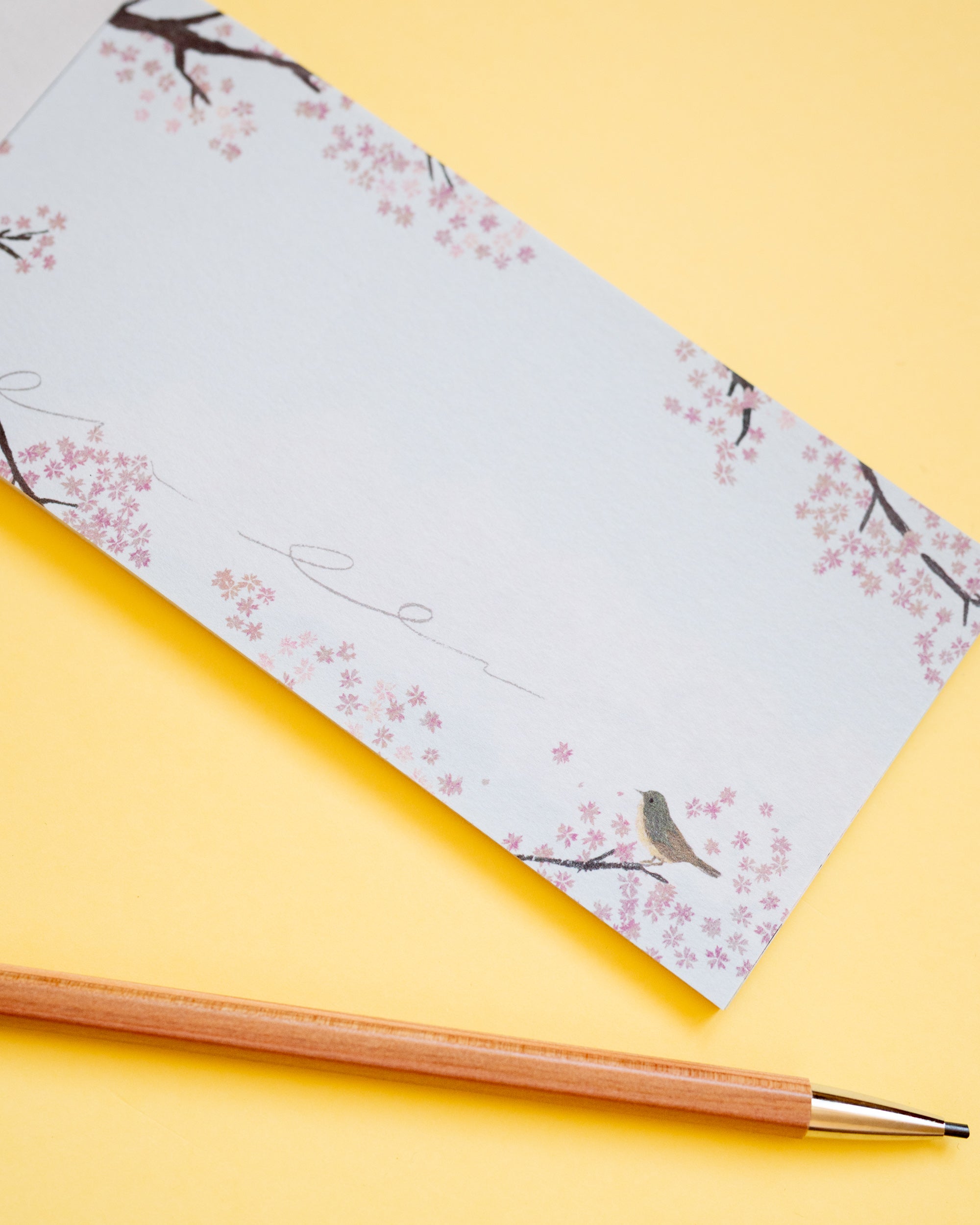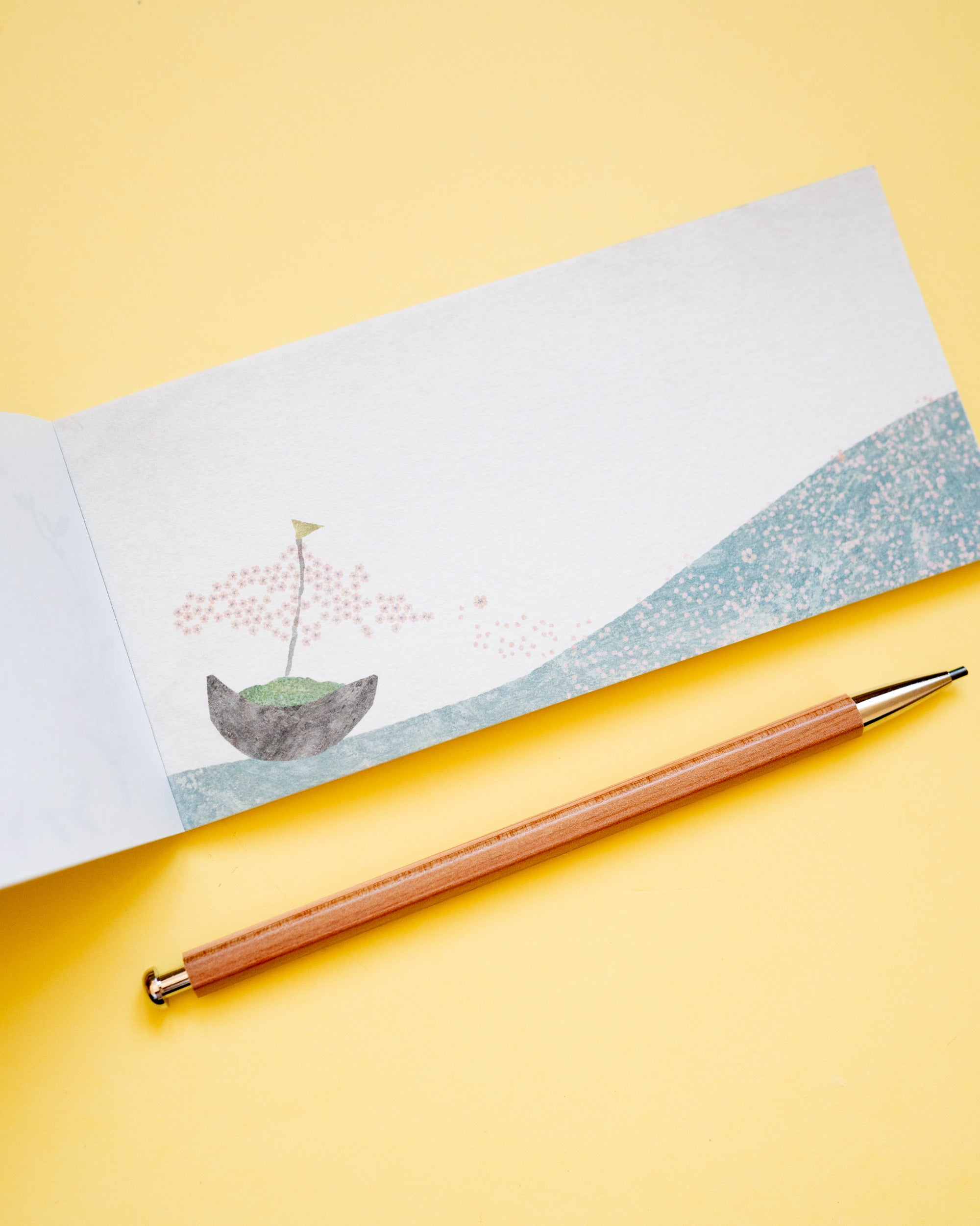 Magnifique bloc-notes illustré par l’artiste japonaise Omori Momoko en collaboration avec cozyca products. Ce carnet se compose de 20 pages illustrées, inspirées par la beauté délicate des fleurs de cerisier. Fabriqué en papier Mino japonais, il offre une texture agréable au toucher que vous allez adorer.