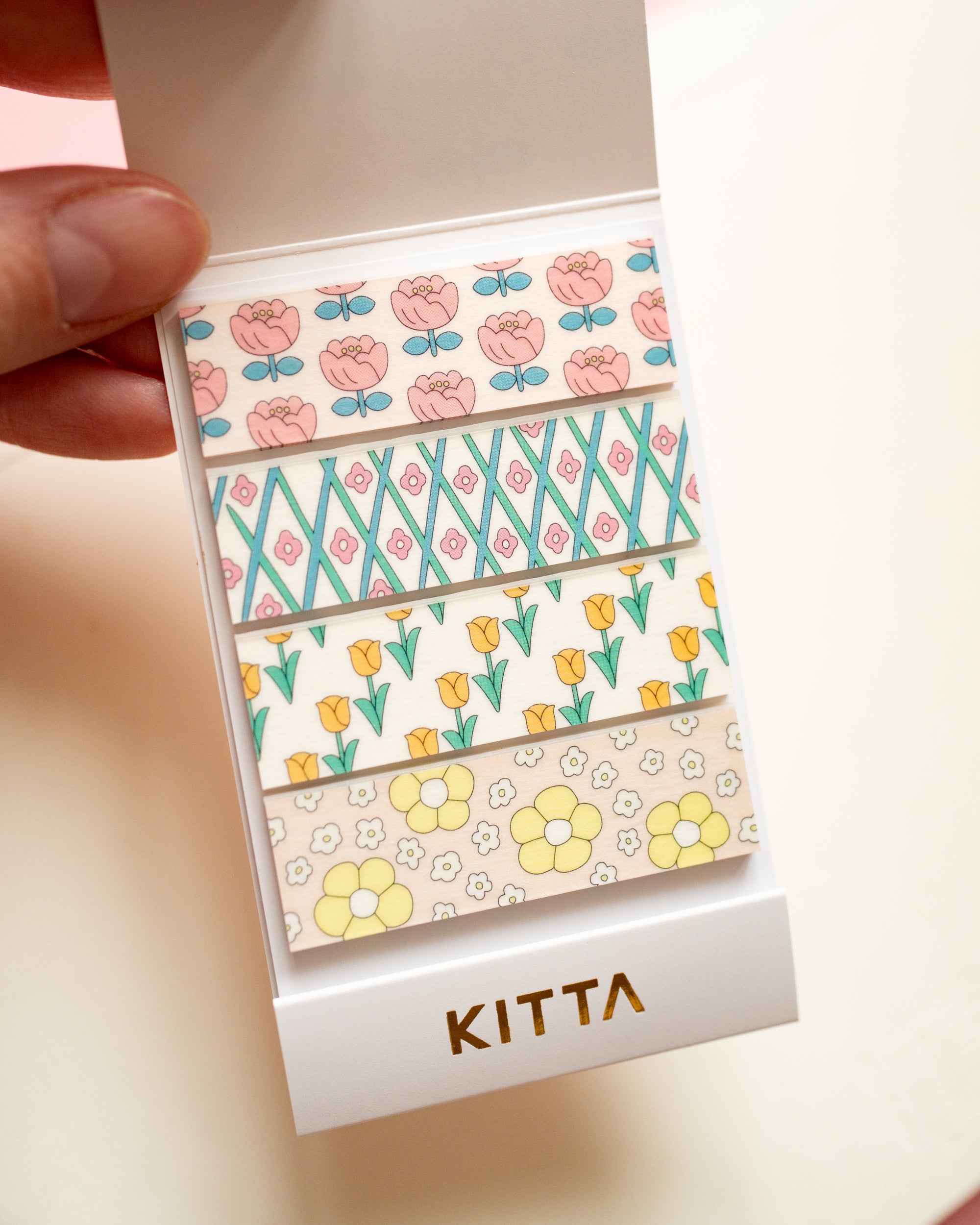 Apportez une touche de fantaisie à vos agendas, albums de scrapbooking, fournitures de bureau ou paquets cadeaux avec ces PET tape de la marque KITTA prédécoupé en bandes pour une application rapide et facile. Les bandes sont présentées dans un livret compact de style carnet d’allumettes, facile à ranger dans un sac à main ou la pochette d’un agenda. Ces stickers façon masking tape sont repositionnables et réutilisables, vous permettant ainsi de modifier ou de réutiliser les bandes à volonté.