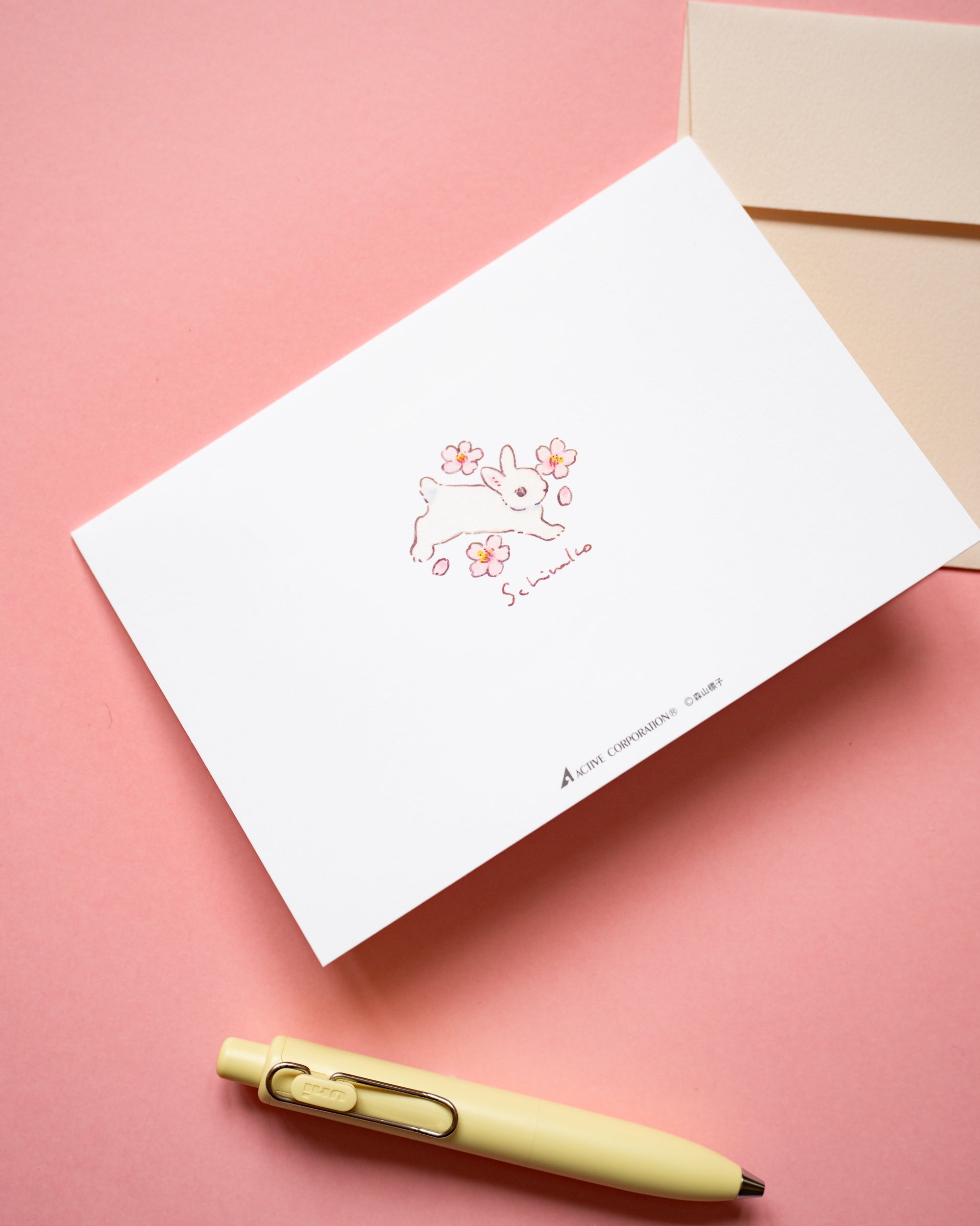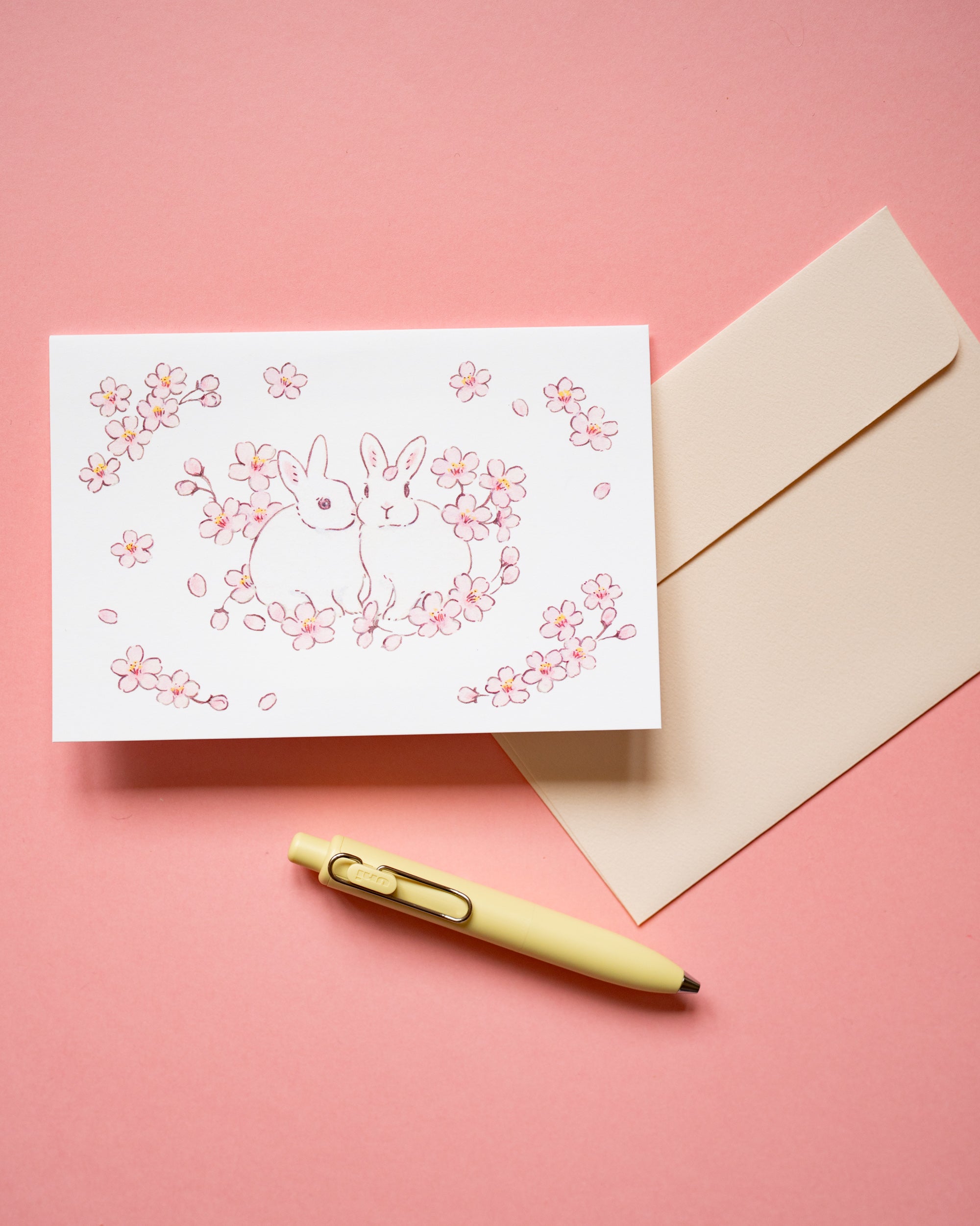 Son design représente des lapins entourés de sakura, des fleurs de cerisier.