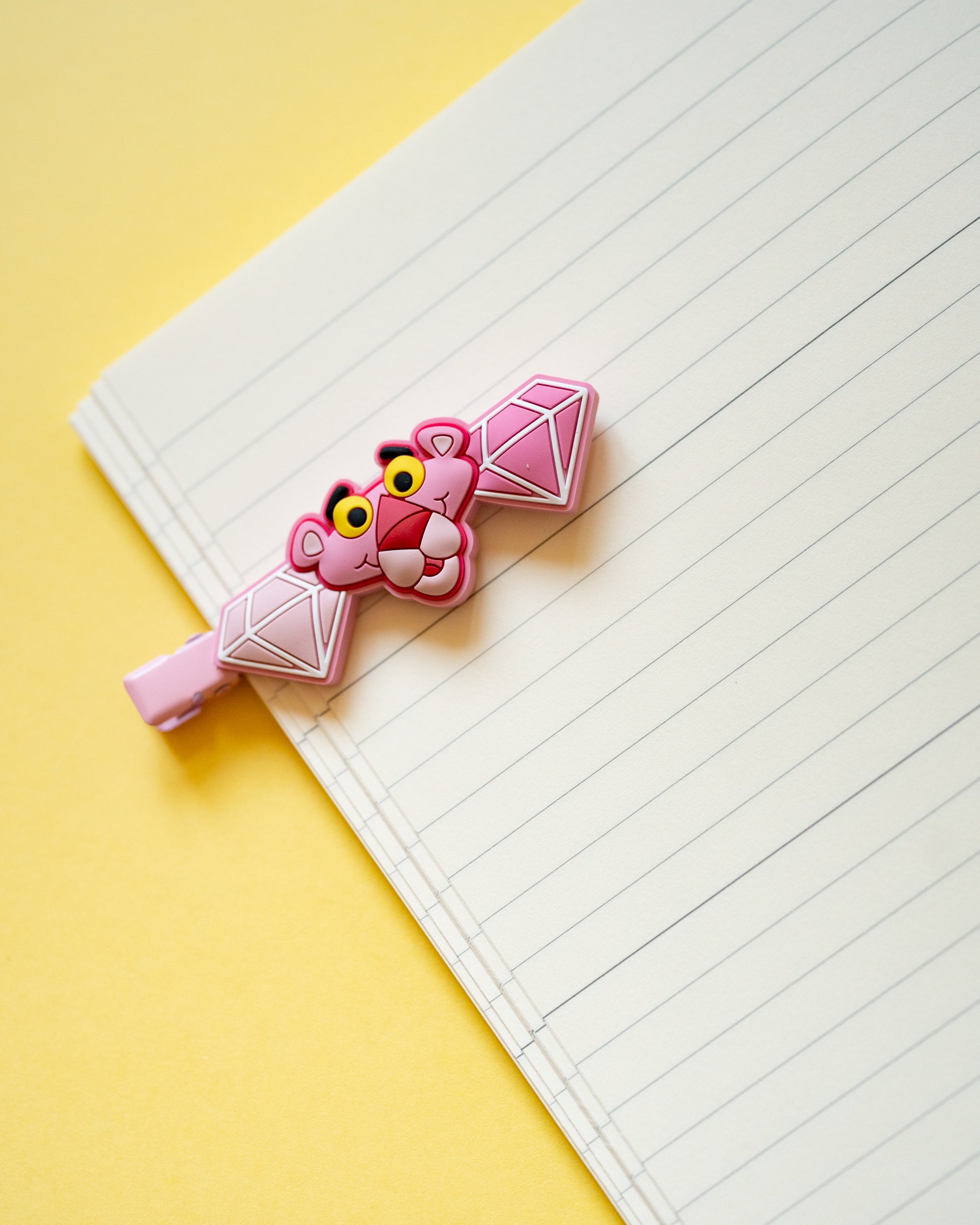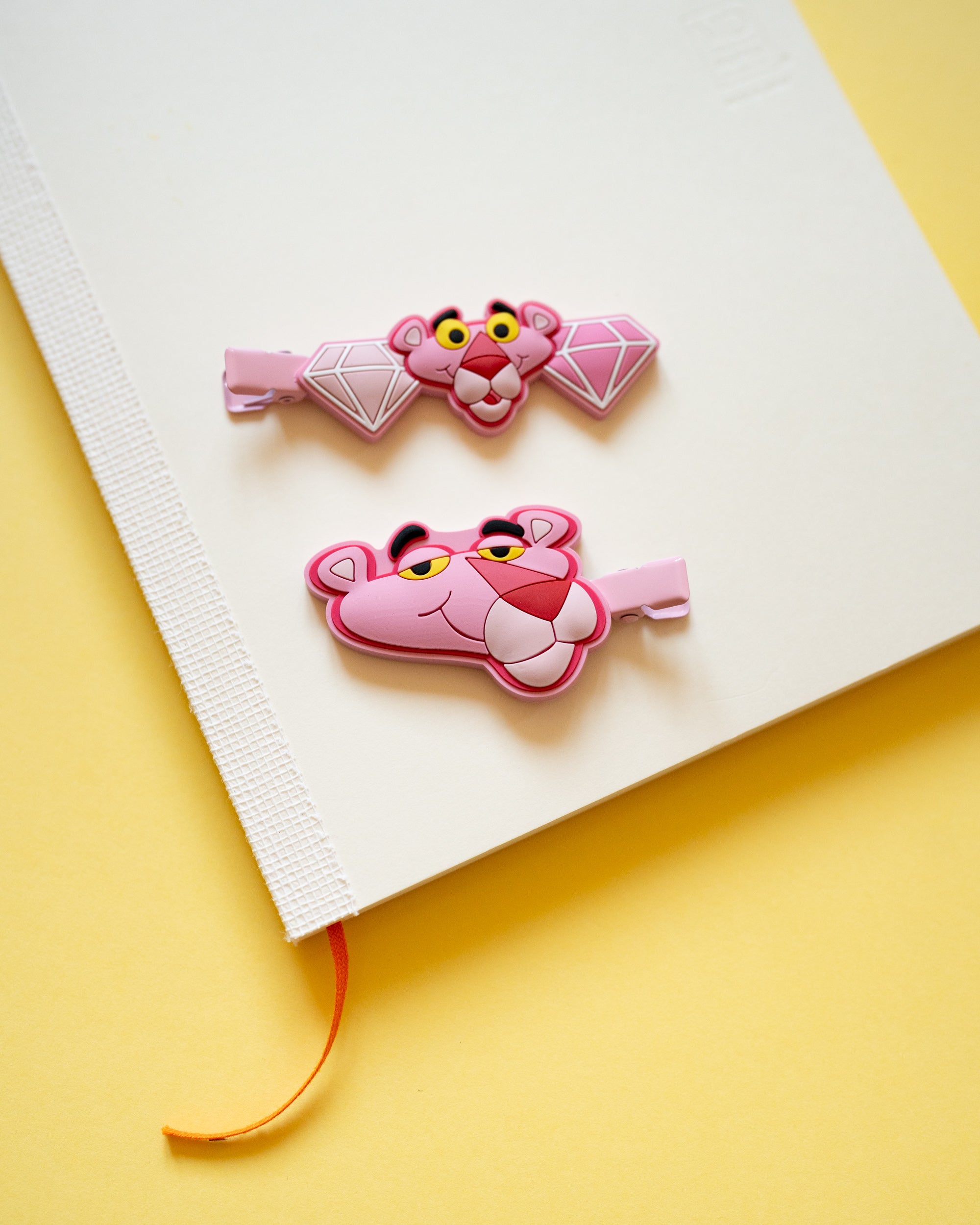 Ajoutez une touche de fun à votre quotidien avec ces clips Panthère Rose ! Arborant l’iconique illustration de la célèbre Panthère Rose, ils sont aussi pratiques qu’esthétique. Ils peuvent être utilisés pour maintenir vos carnets ouverts à plat, pour attacher vos cheveux ou encore décorer vos sacs ! Il s’agit d’une édition limitée.
