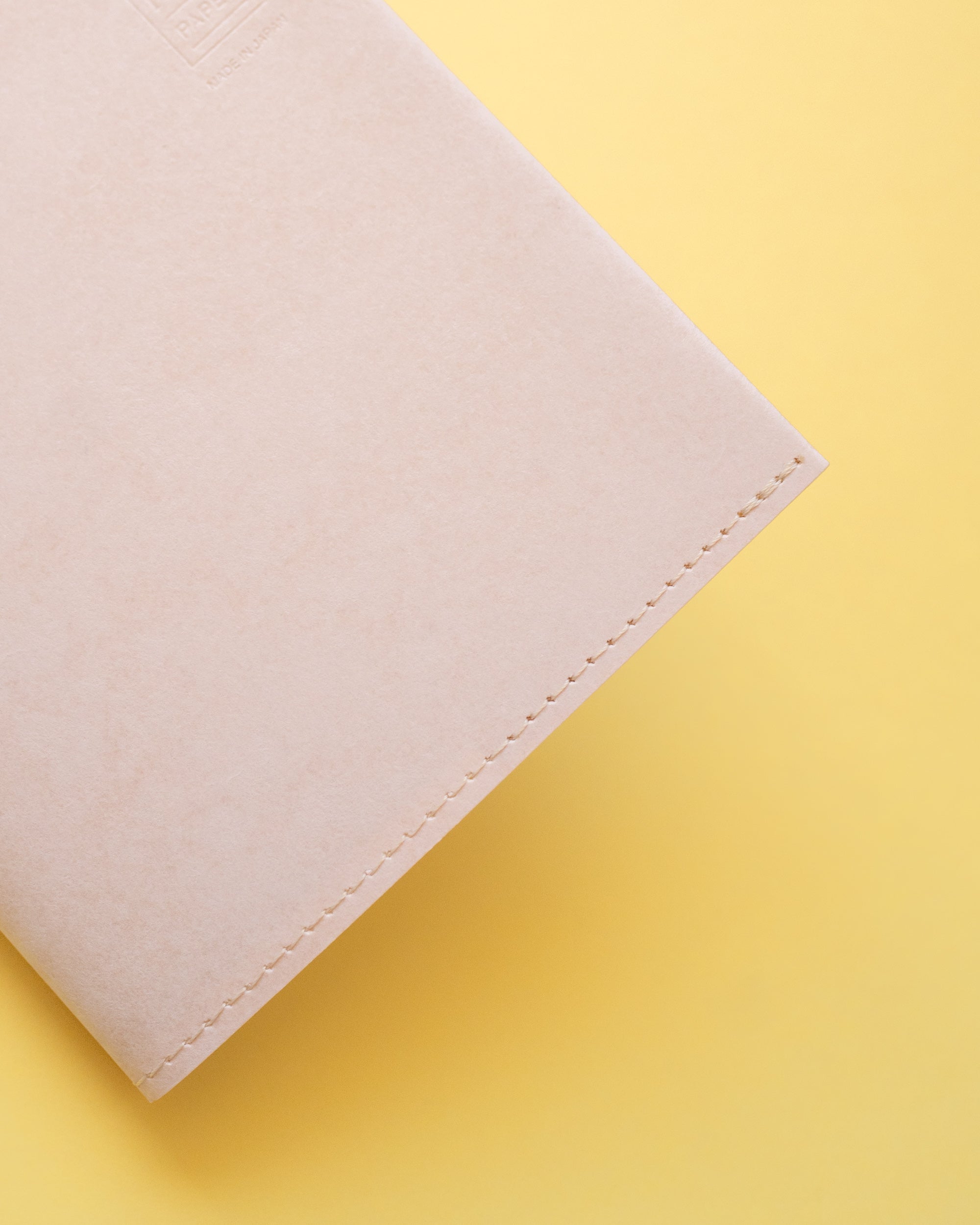 Fabriquée à partir de papier “Cordoba”, un matériau doux et ciré issu du bois d’eucalyptus, elle reproduit la texture souple et lisse du cuir. Sa finition naturelle et discrète respecte l’esthétique épurée des carnets MD Paper tout en offrant une protection optimale.