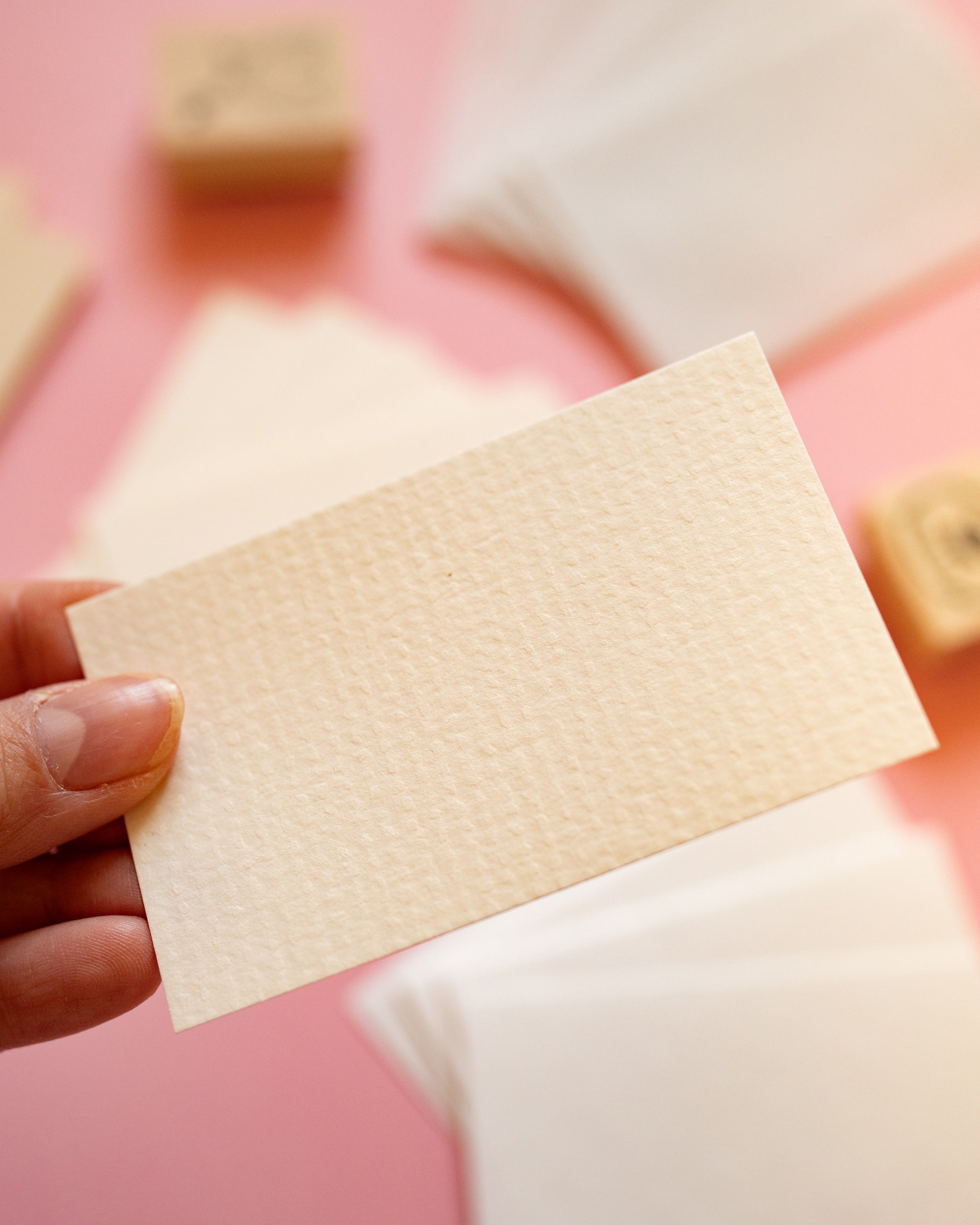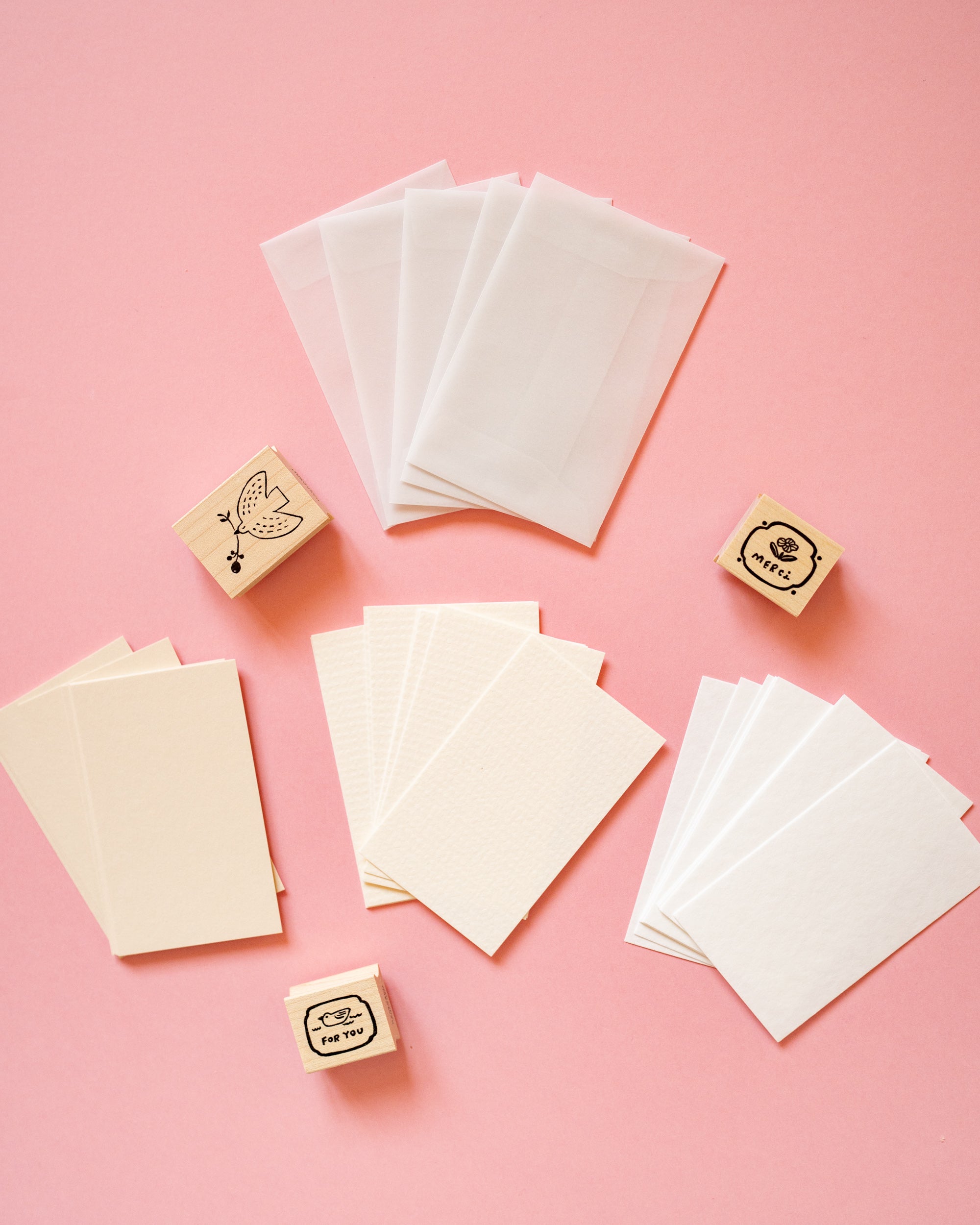 Créez des cartes uniques et personnalisées avec cet ensemble comprenant 30 petites cartes vierges (10 blanches, 10 couleur crème, et 10 couleur naturelle) et 5 enveloppes. Parfaites pour accompagner vos cadeaux ou pour vos projets créatifs, ces cartes sont fabriquées à partir de papier épais et texturé japonais, offrant une belle qualité pour l’écriture et la décoration.