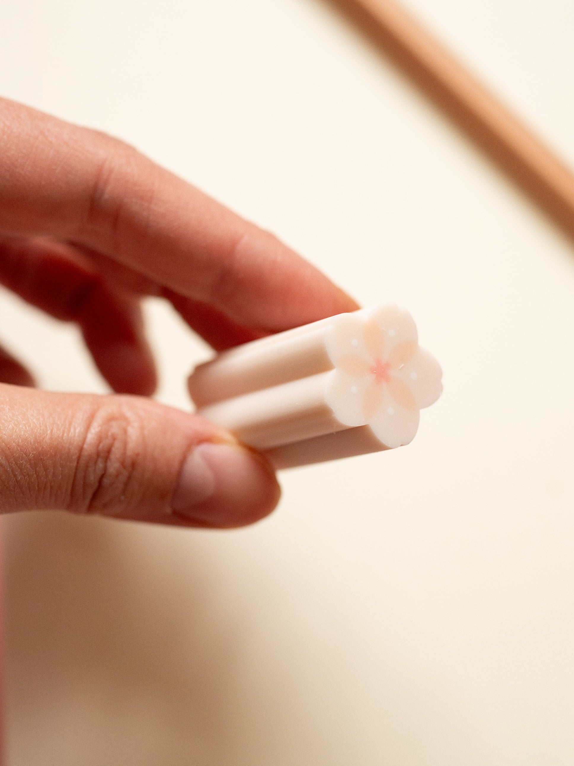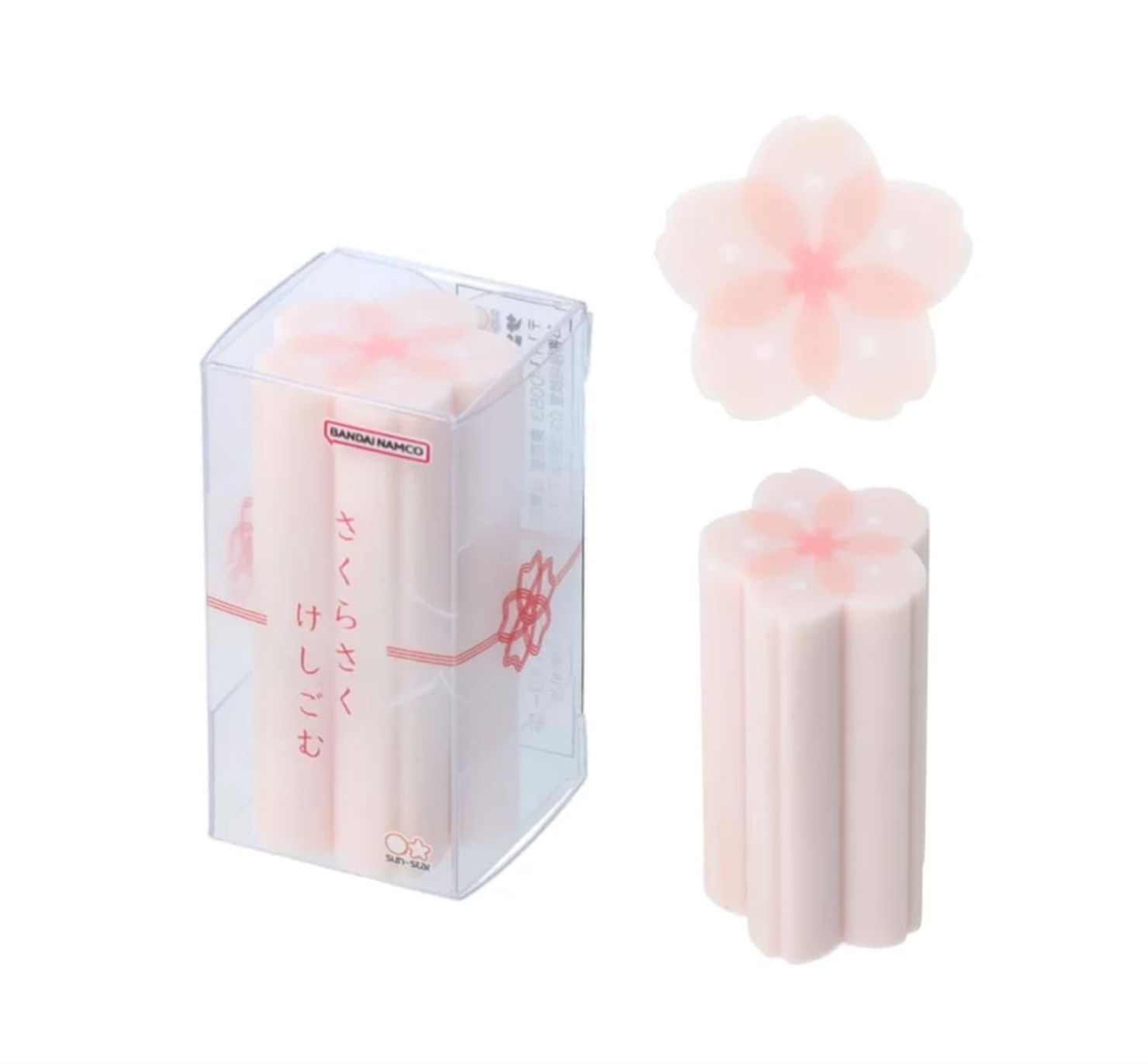 S’il y avait un concours de la plus belle gomme, celle-ci gagnerait haut la main ! On adore son designe de fleur de Sakura et sa belle couleur rose. Et en plus d’être belle elle est pratique car grâce à sa forme de pentagone vous pouvez utiliser pleins de coins différents pour gommer !