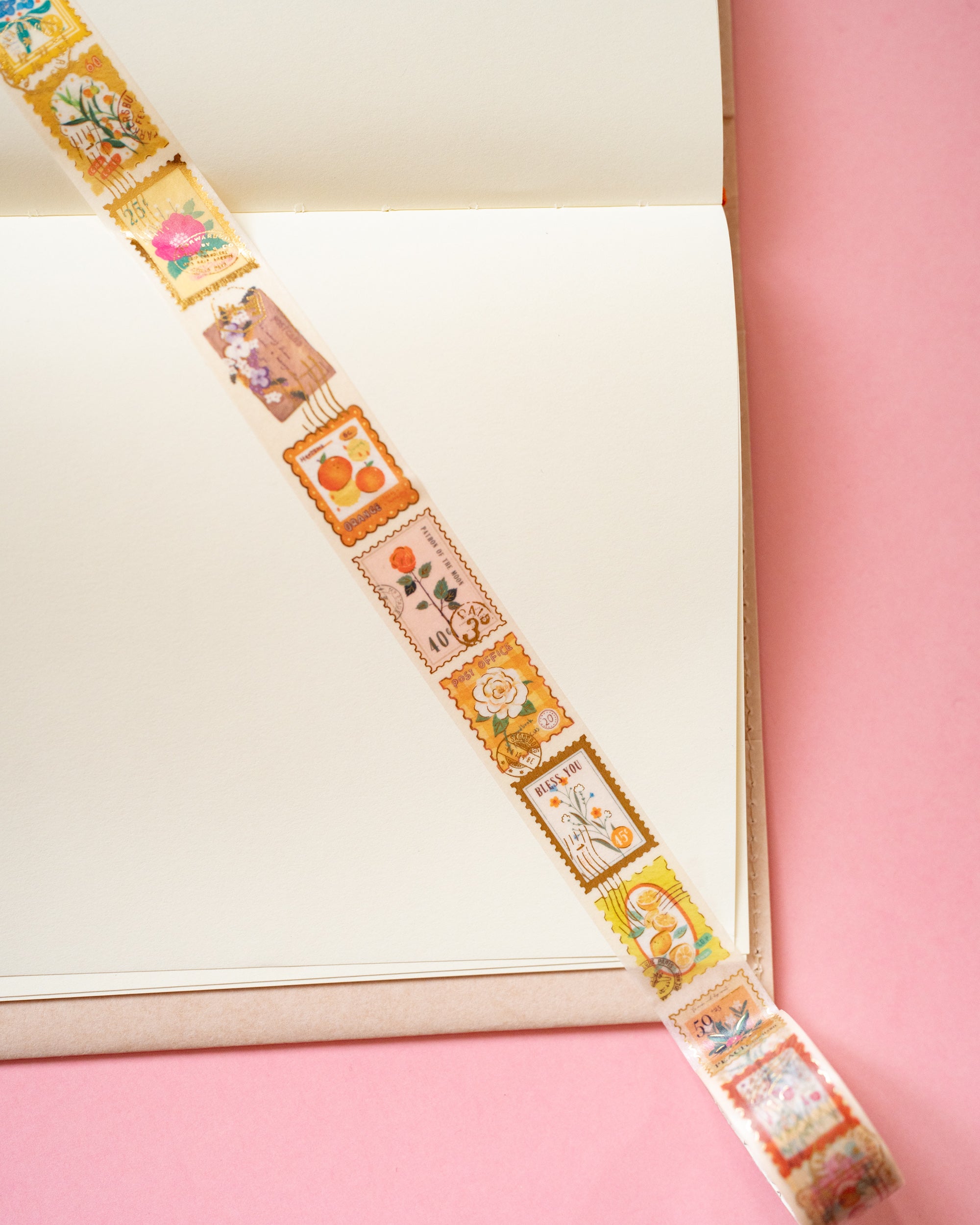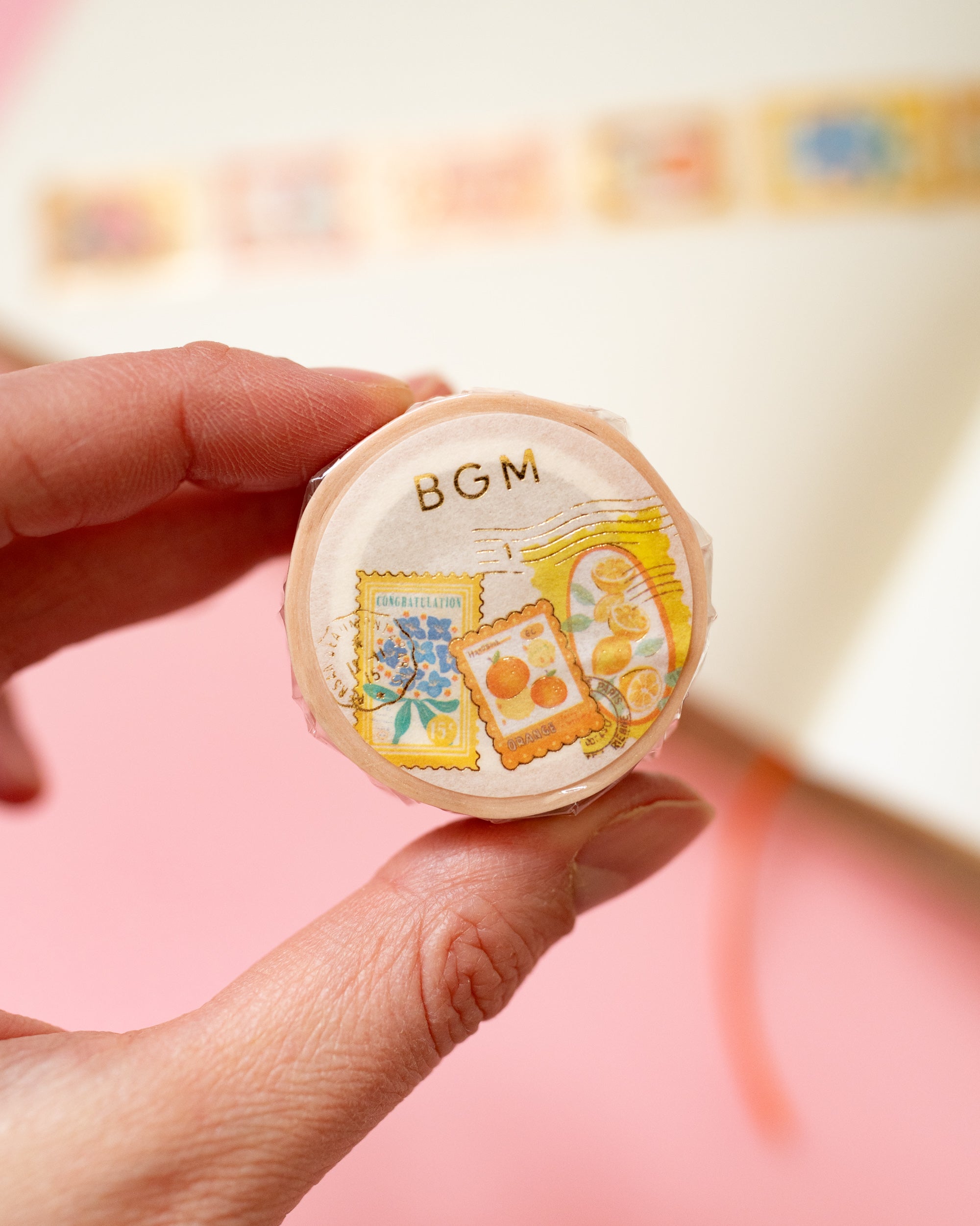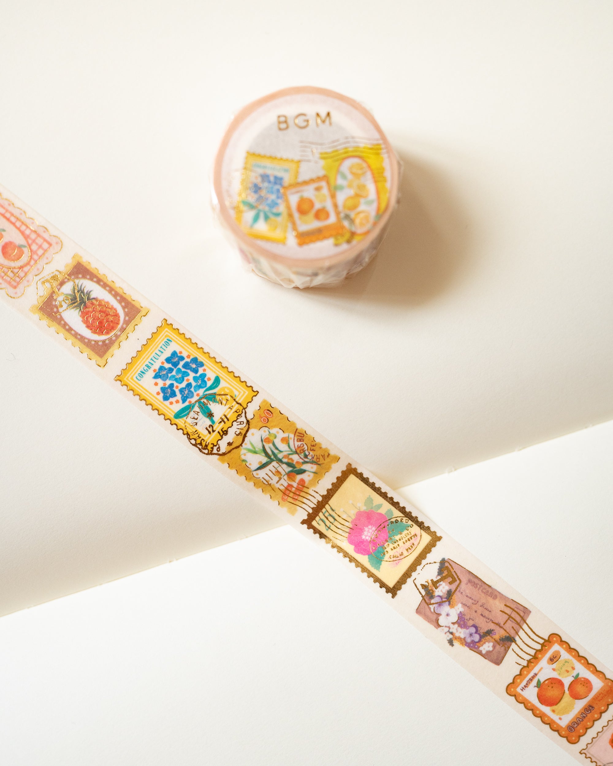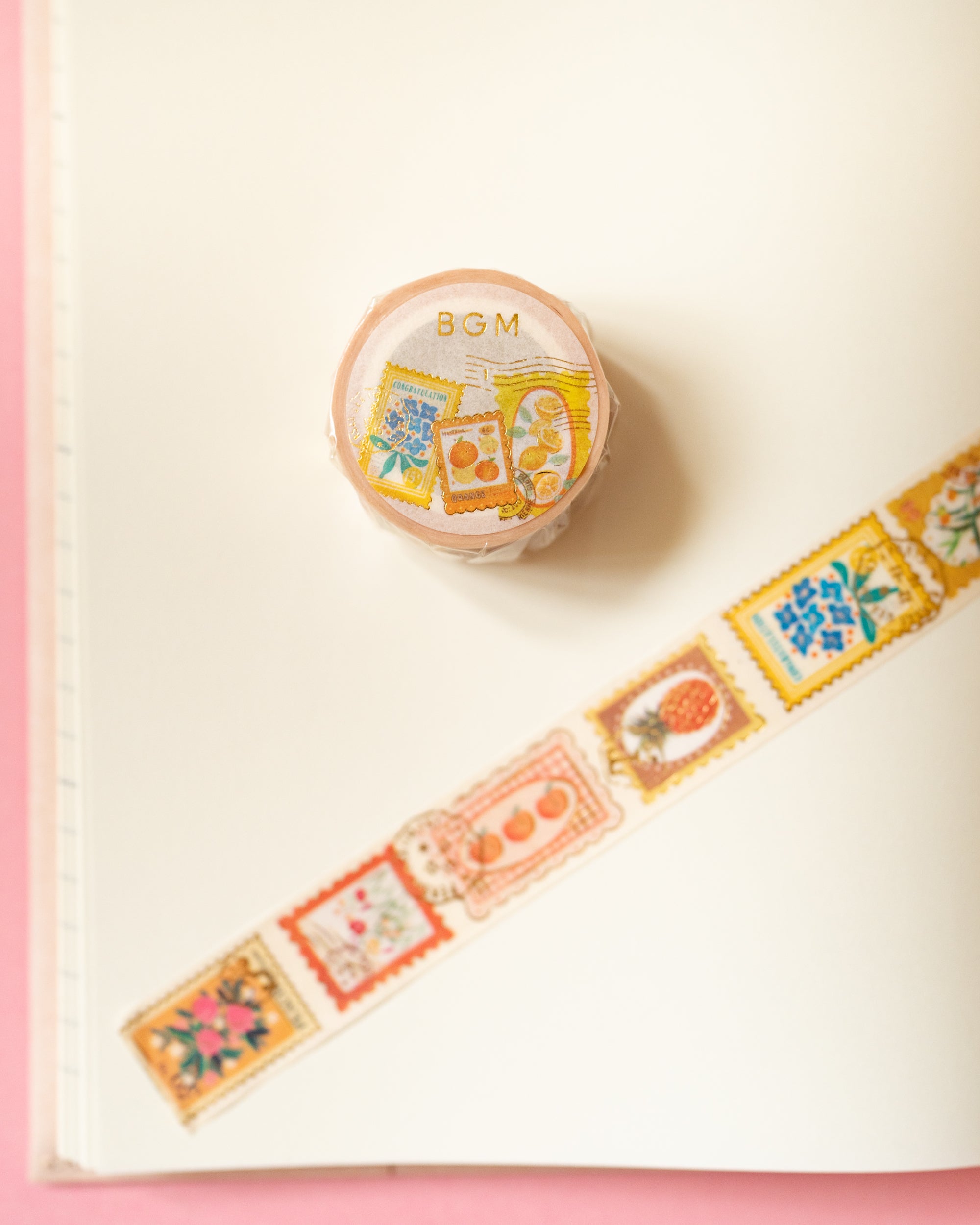 Ce masking tape de la marque BGM illustrés de timbres fleuris vous charmera par son originalité et ses couleurs. Idéal pour accrocher des cartes postales, décorer un carnet ou un journal, personnaliser des lettres, ou sceller des enveloppes, il apporte une touche colorée à toutes vos créations.
