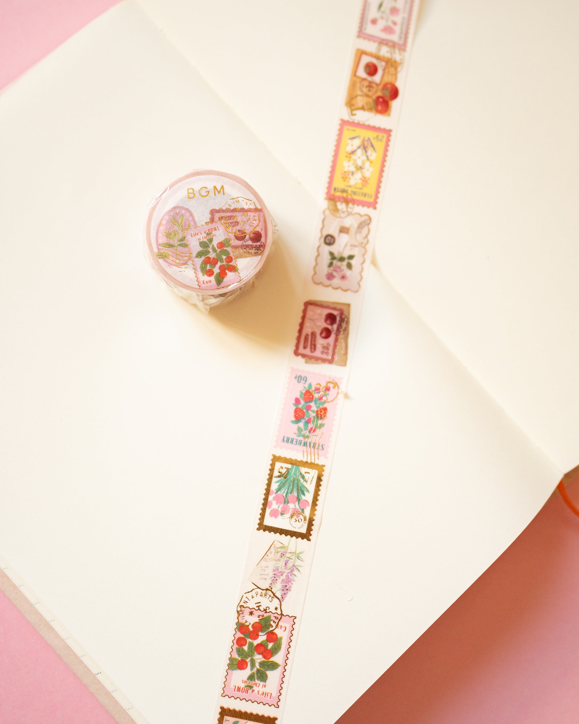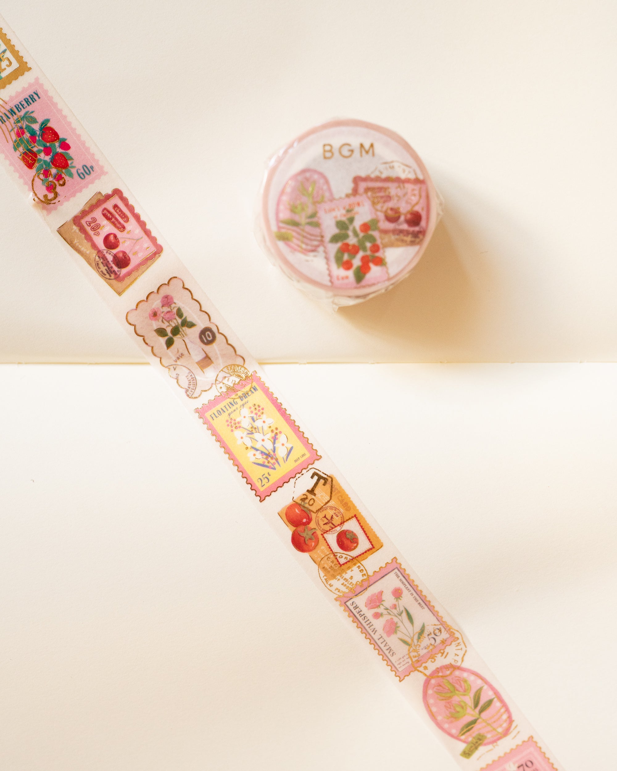 Ce masking tape de la marque BGM illustrés de timbres fleuris vous charmera par son originalité et ses couleurs. Idéal pour accrocher des cartes postales, décorer un carnet ou un journal, personnaliser des lettres, ou sceller des enveloppes, il apporte une touche colorée à toutes vos créations.