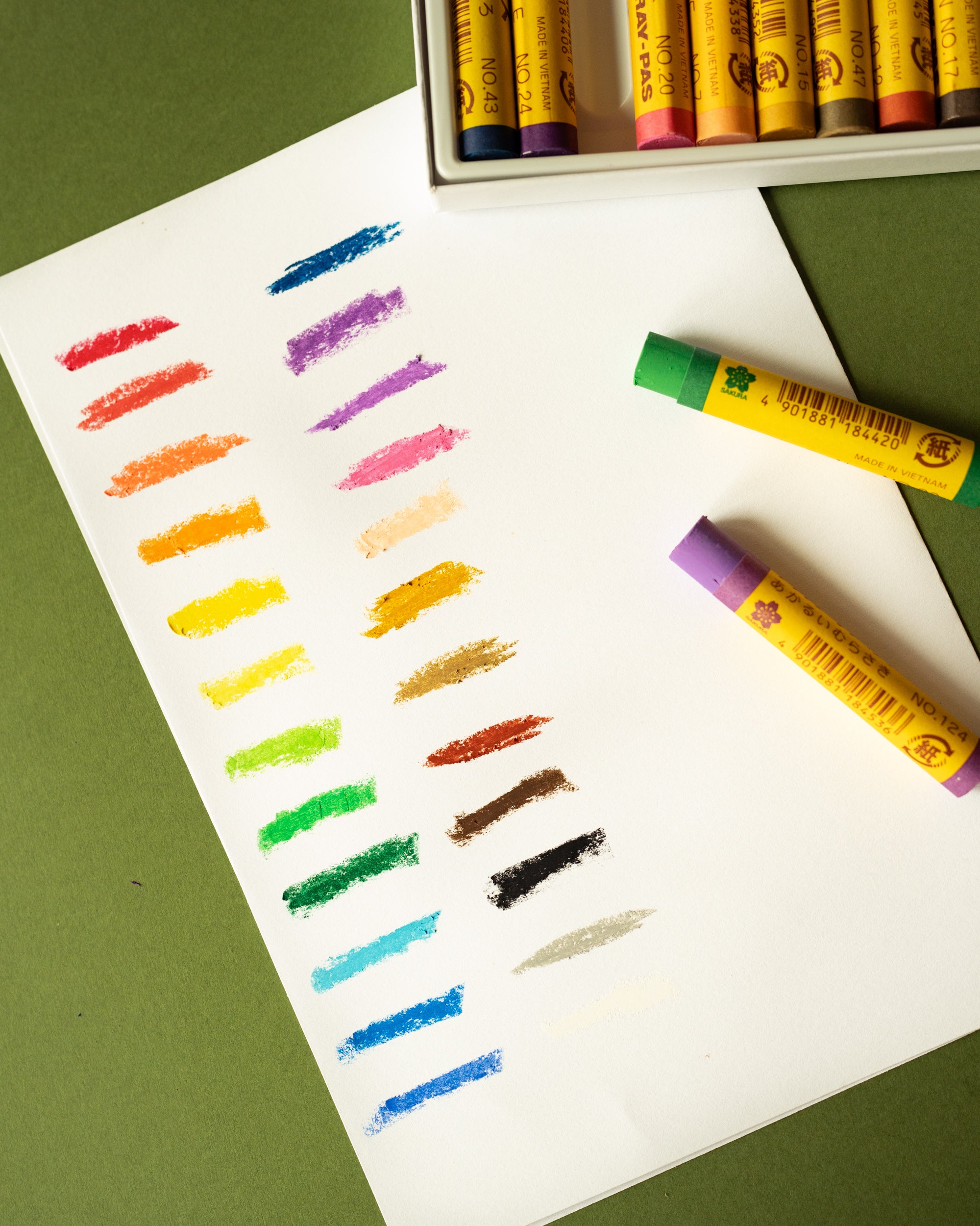 À noter : bien que les pastels à l’huile offrent des couleurs plus riches que les crayons de cire, ils sont plus difficiles à nettoyer sur les vêtements. Ils conviennent donc mieux aux enfants plus âgés et aux adultes