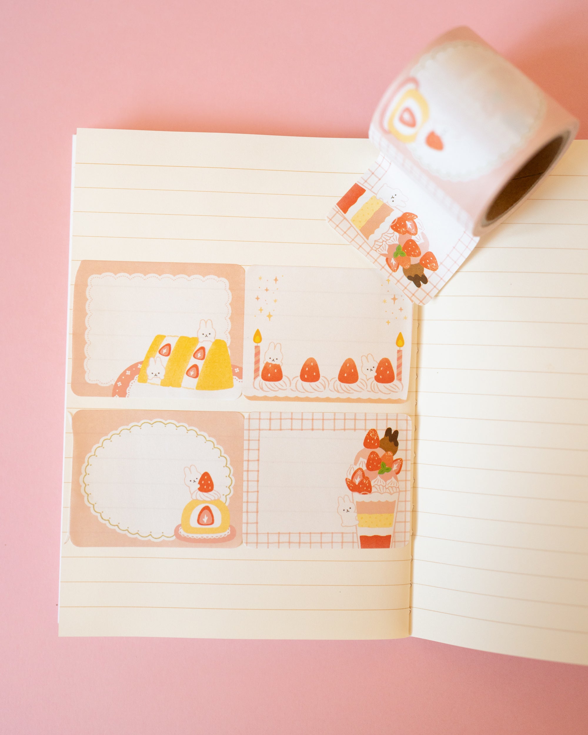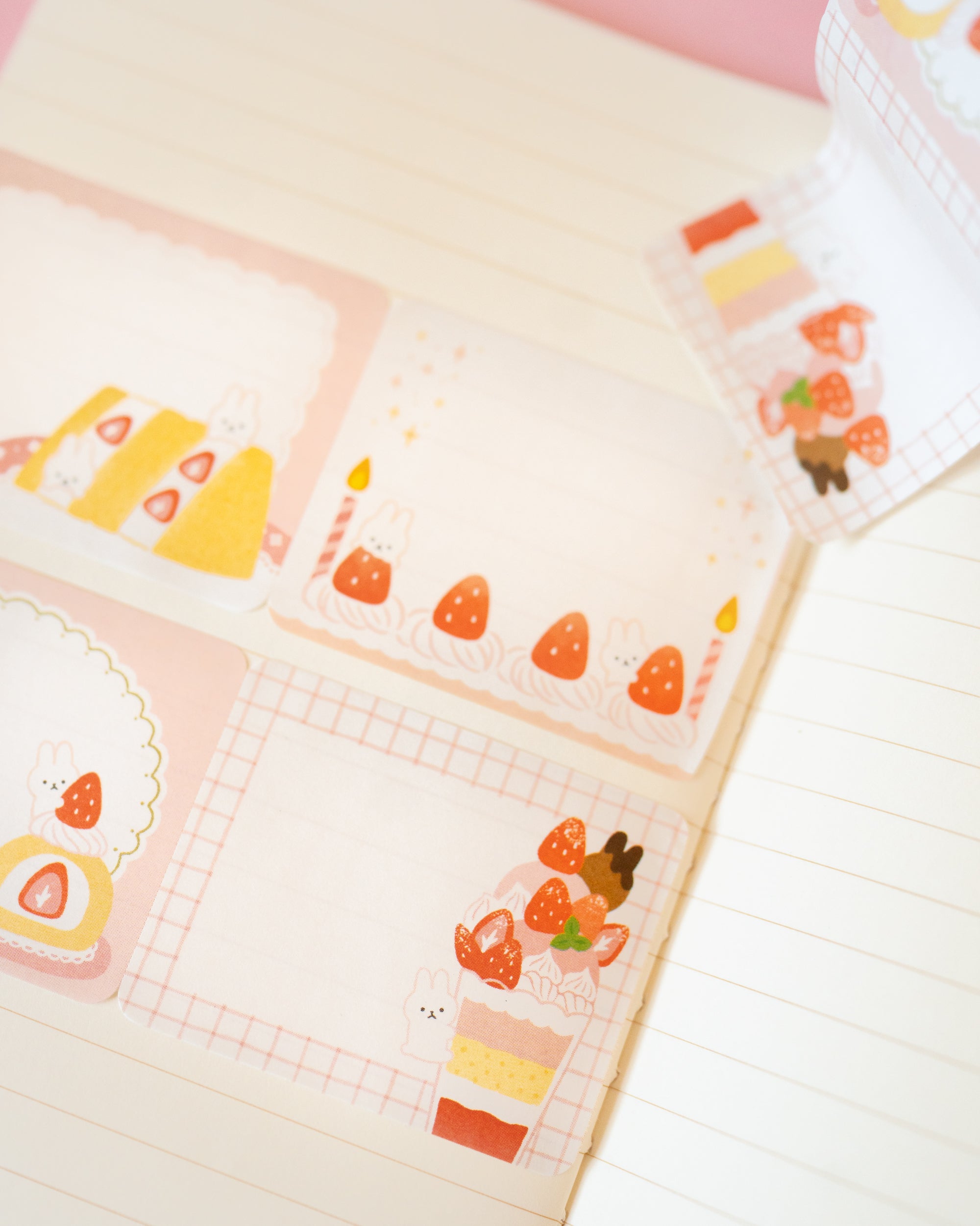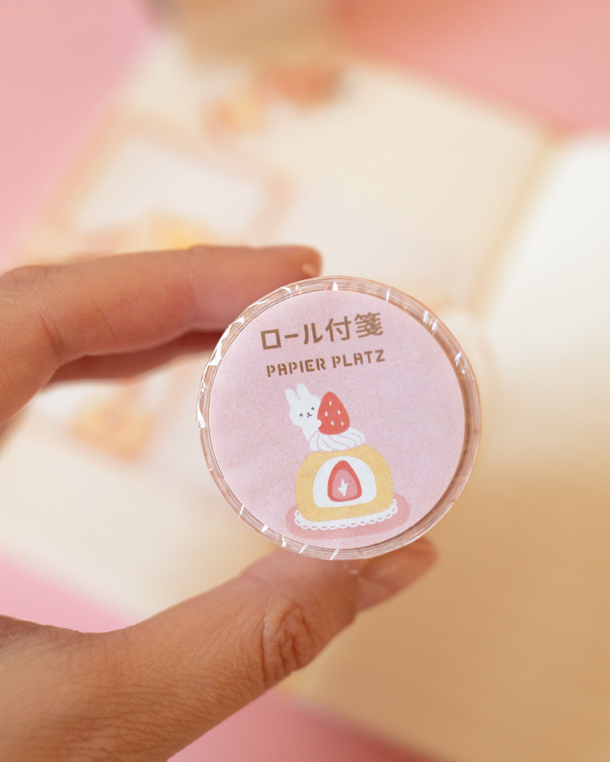 Ce rouleau de notes adhésives, illustré d’un lapins et de gâteaux aux fraises, est parfait pour ajouter une touche de fantaisie à vos écrits. Les notes se détachent facilement grâce aux micro-perforations. Idéales pour écrire des messages ou décorer un agenda, un carnet ou un emballage cadeau. Chaque feuille est entièrement autocollante.