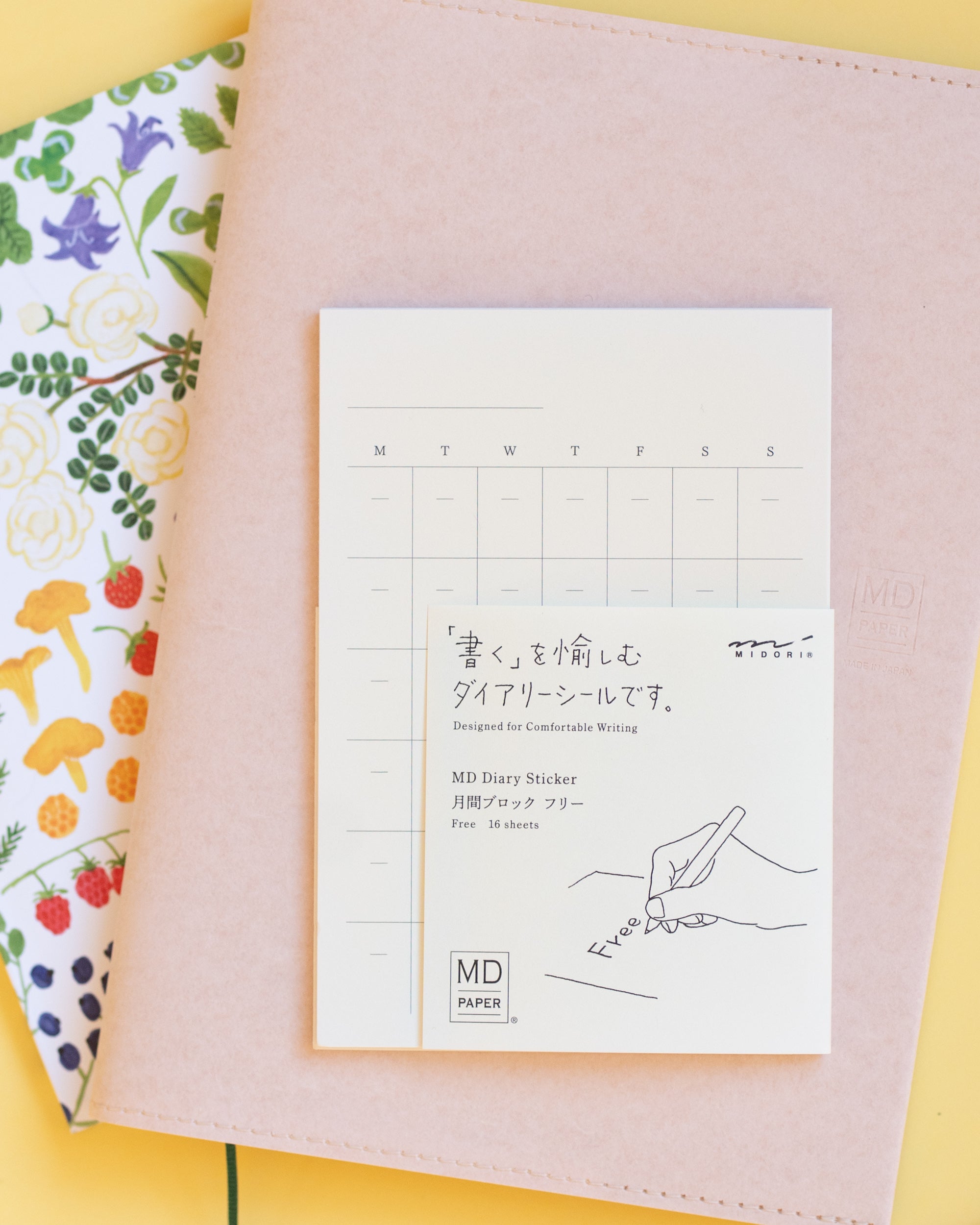 Transformez n’importe quel carnet en agenda personnalisé avec les stickers non datés MD Diary de Midori. Ils vous permettent d’organiser votre mois dans votre carnet ou bullet journal, tout en offrant suffisamment d’espace pour exprimer votre créativité, que ce soit avec vos écrits, des stickers ou vos propres illustrations. Parfaits pour ceux qui trouvent que certains mois manquent d’espace dans les agendas traditionnels.