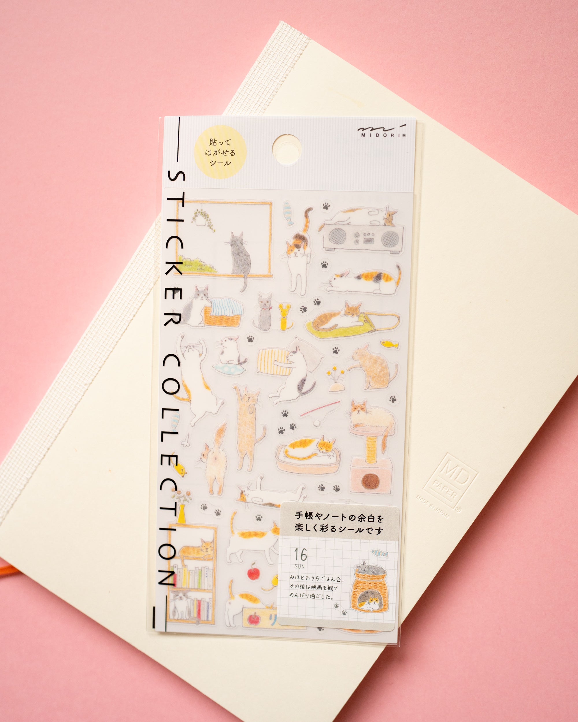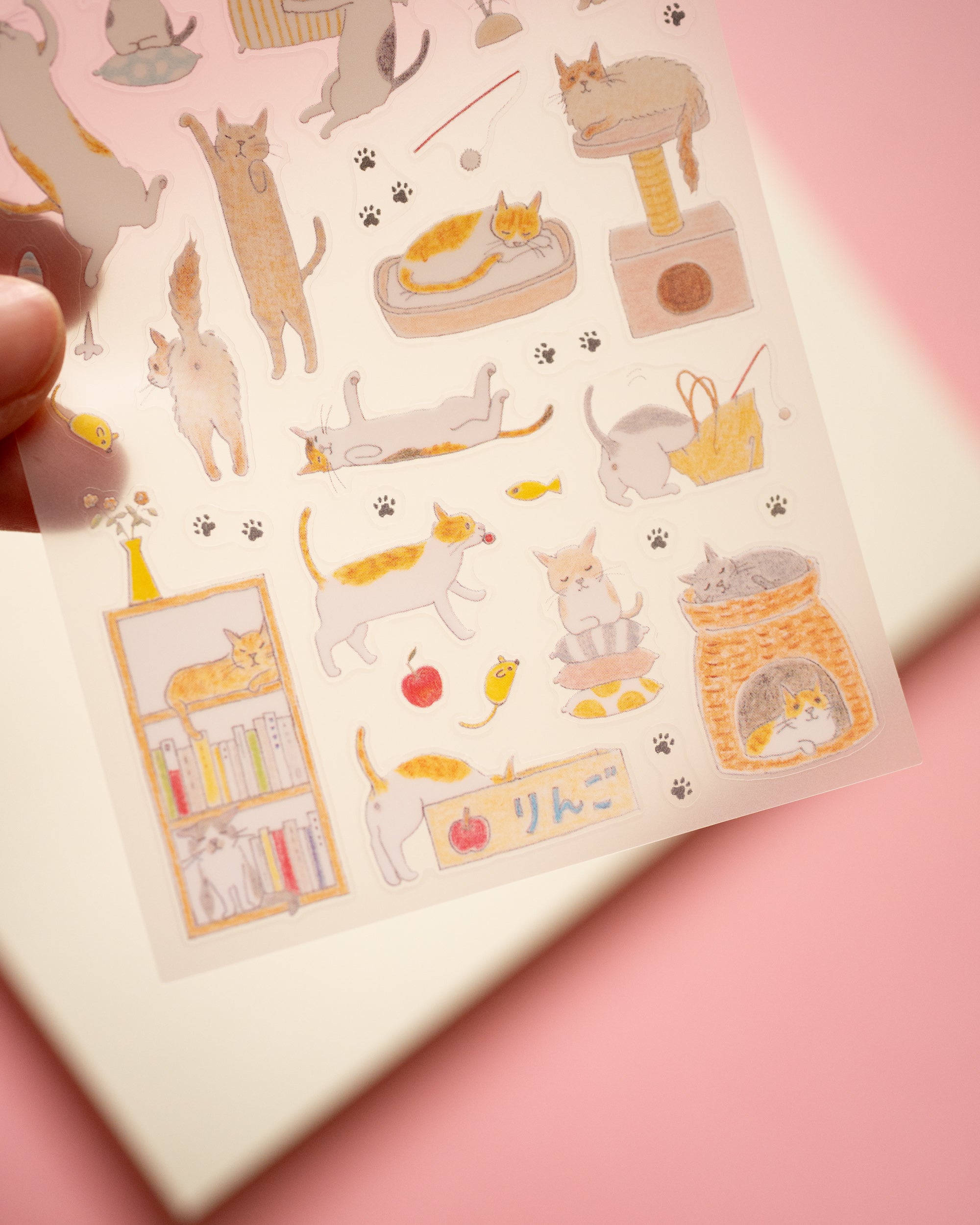 Illustrés par la talentueuse Natsumi Teraoka, ces autocollants sont parfaits pour embellir les marges de votre agenda ou marquer des dates clés. Les stickers à motifs de chats, de taille moyenne, sont idéaux pour combler les espaces plus larges de vos carnets ou planners, tandis que les plus petits stickers ajoutent une touche délicate dans les recoins, ou permettent de créer des scènes cosy.