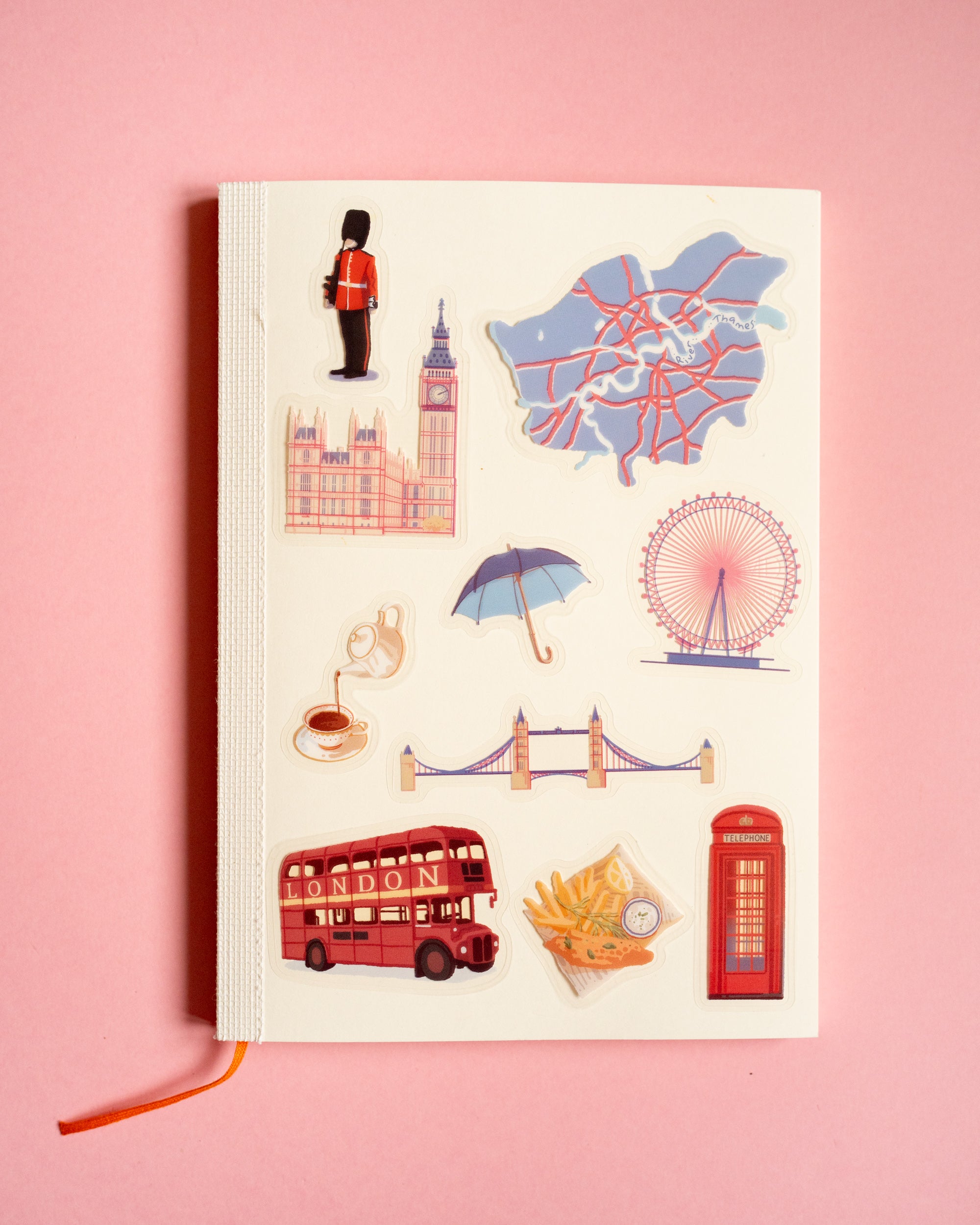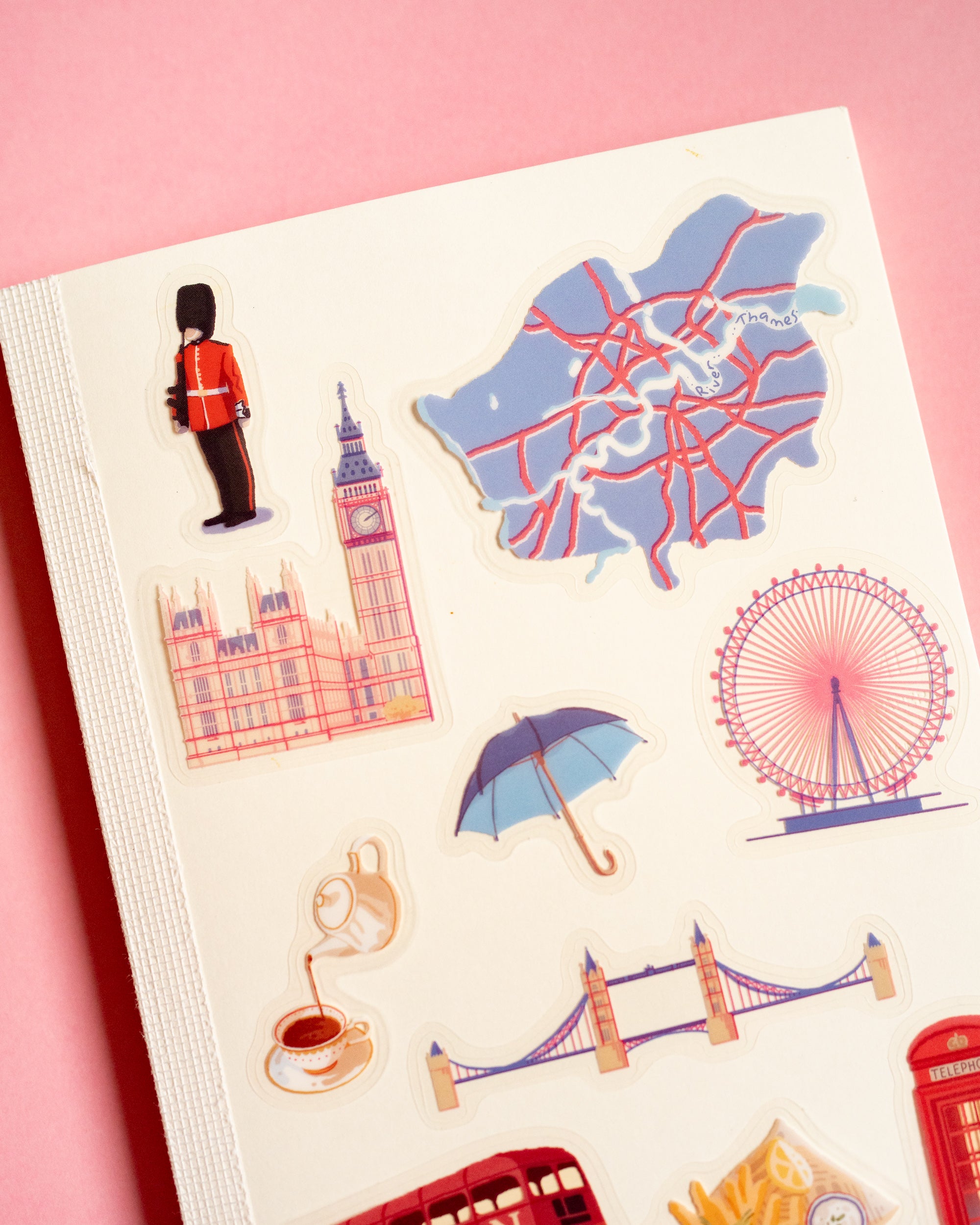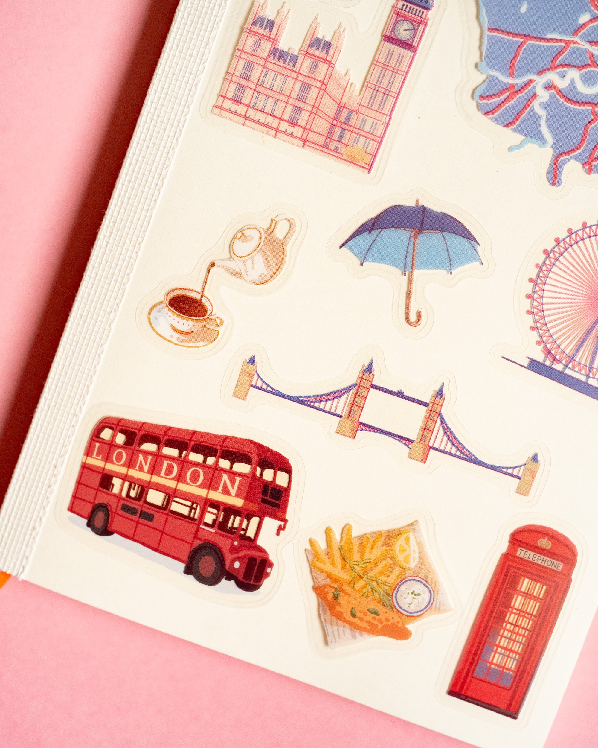 Ce set de 30 stickers transparents comprend 10 designs inspirés par la ville de Londres. Ces stickers peuvent être superposés ou appliqués sur des objets transparents, offrant une multitude d’utilisations créatives. Ils sont parfaits pour le scrapbooking, la décoration de vos carnets, la fabrication de cartes et les projets DIY.