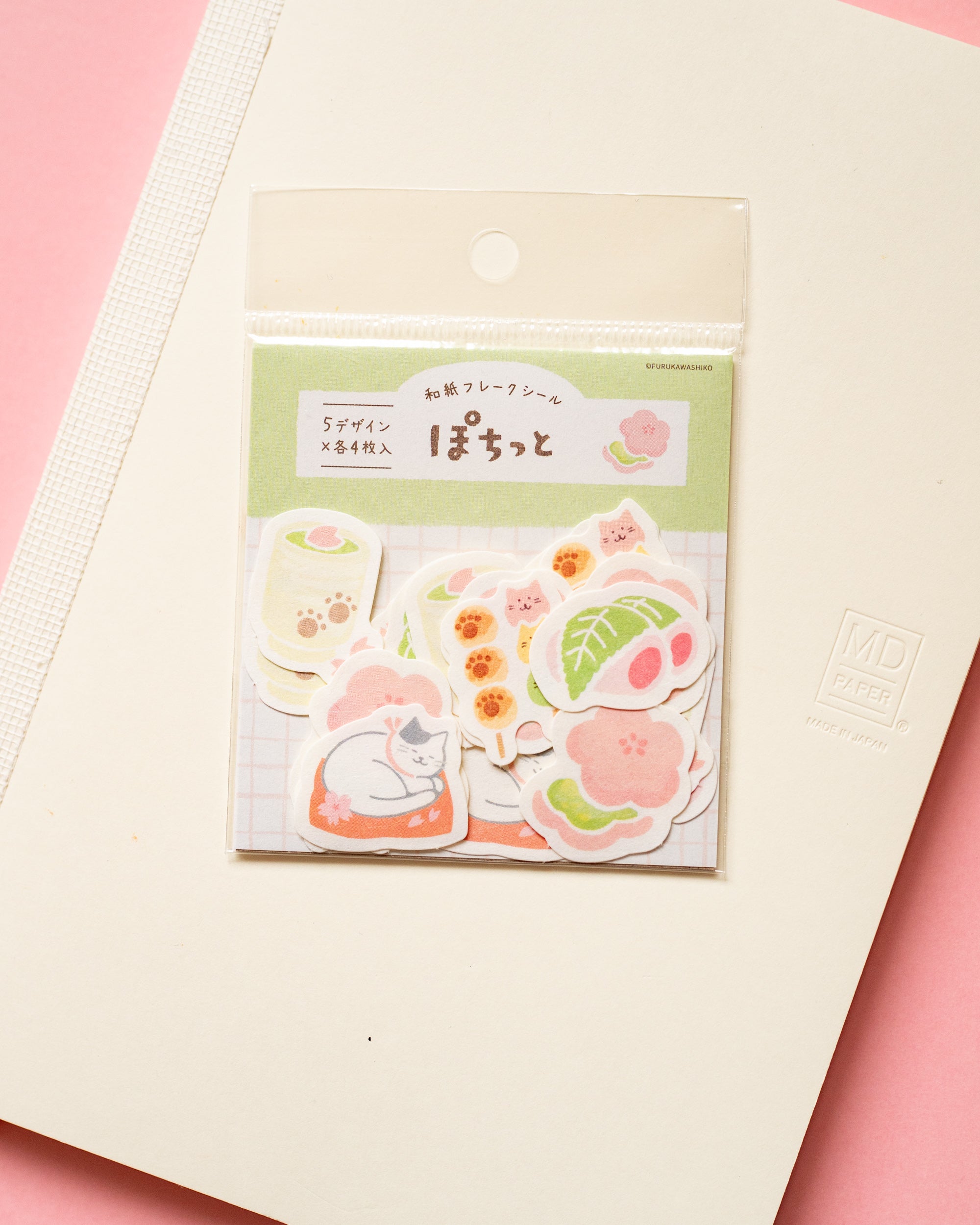 Ces washi flakes mettent en scène des chats et des douceurs japonaises typique du printemps. Parfaits pour sceller des enveloppes ou décorer des cahiers, agendas et paquets cadeaux