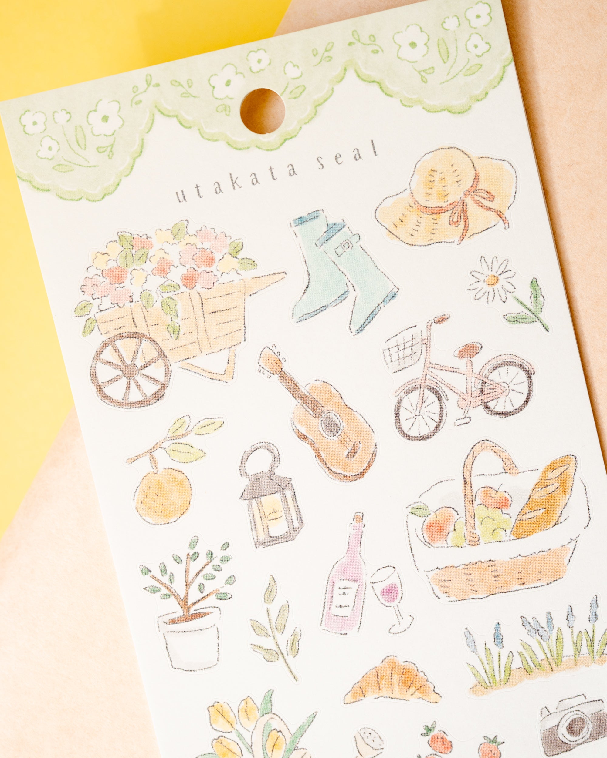 Les autocollants Utakata présentent un style crayonné léger et doux qui donne aux illustrations un aspect chaleureux. Chaque feuille de stickers contient environ 20 à 30 autocollants en papier, selon le design. Disponible en 3 designs différents sur la boutique.