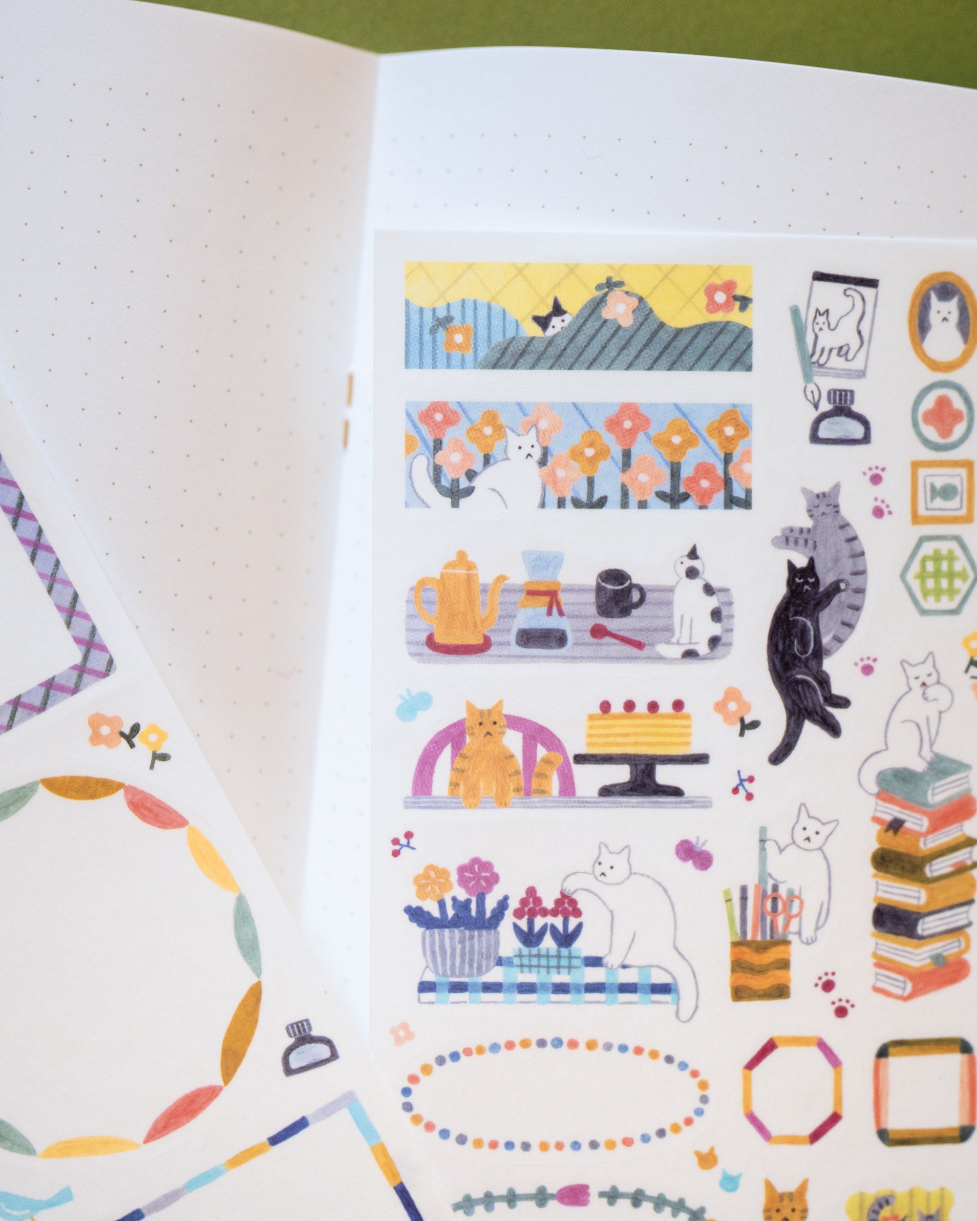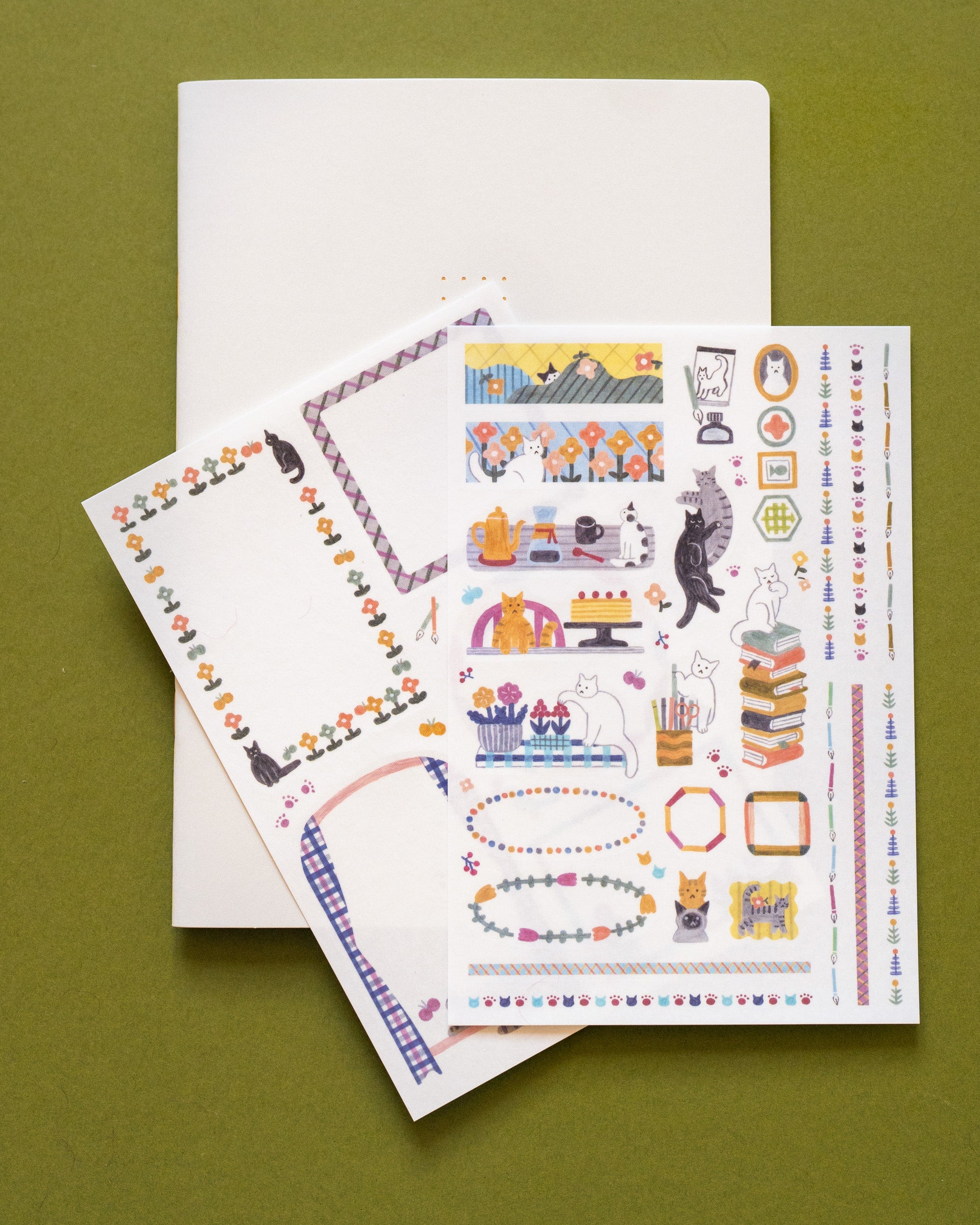 Ce set comprend deux feuilles de stickers mettant en scène des chats illustrés par Horibe Kumiko. Personnalisez facilement vos pages de carnets ou agenda en écrivant directement sur les autocollants ou en les disposant dans les marges pour un style unique et créatif. Ces autocollants sont repositionnables, vous permettant de les déplacer facilement pour ajuster leur emplacement une fois votre page terminée.