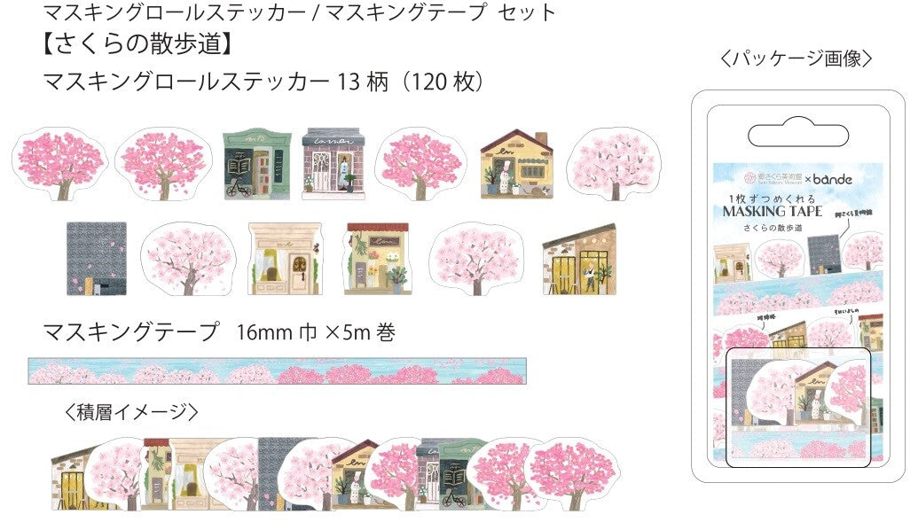 Ce set de stickers fleuris a été créé en collaboration avec le Musée Sato Sakura de Meguro, à Tokyo. Il comprend deux rouleaux :